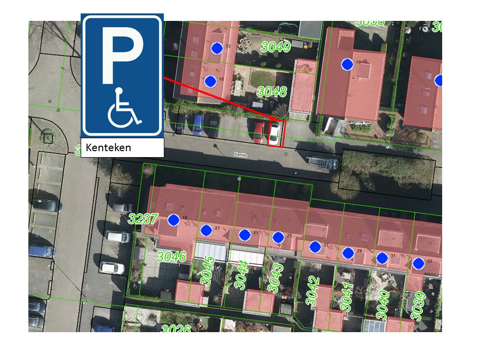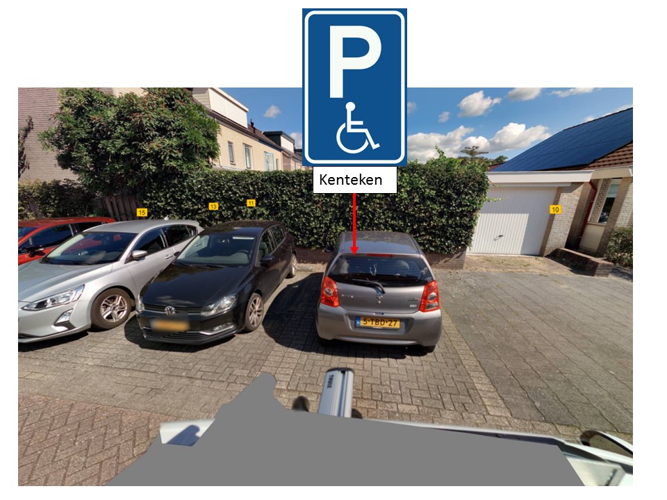 • een gereserveerde gehandicaptenparkeerplaats kan worden gerealiseerd door het plaatsen van het bord E6 ‘gehandicaptenparkeerplaats’ en onderbord met kenteken van de aanvrager;