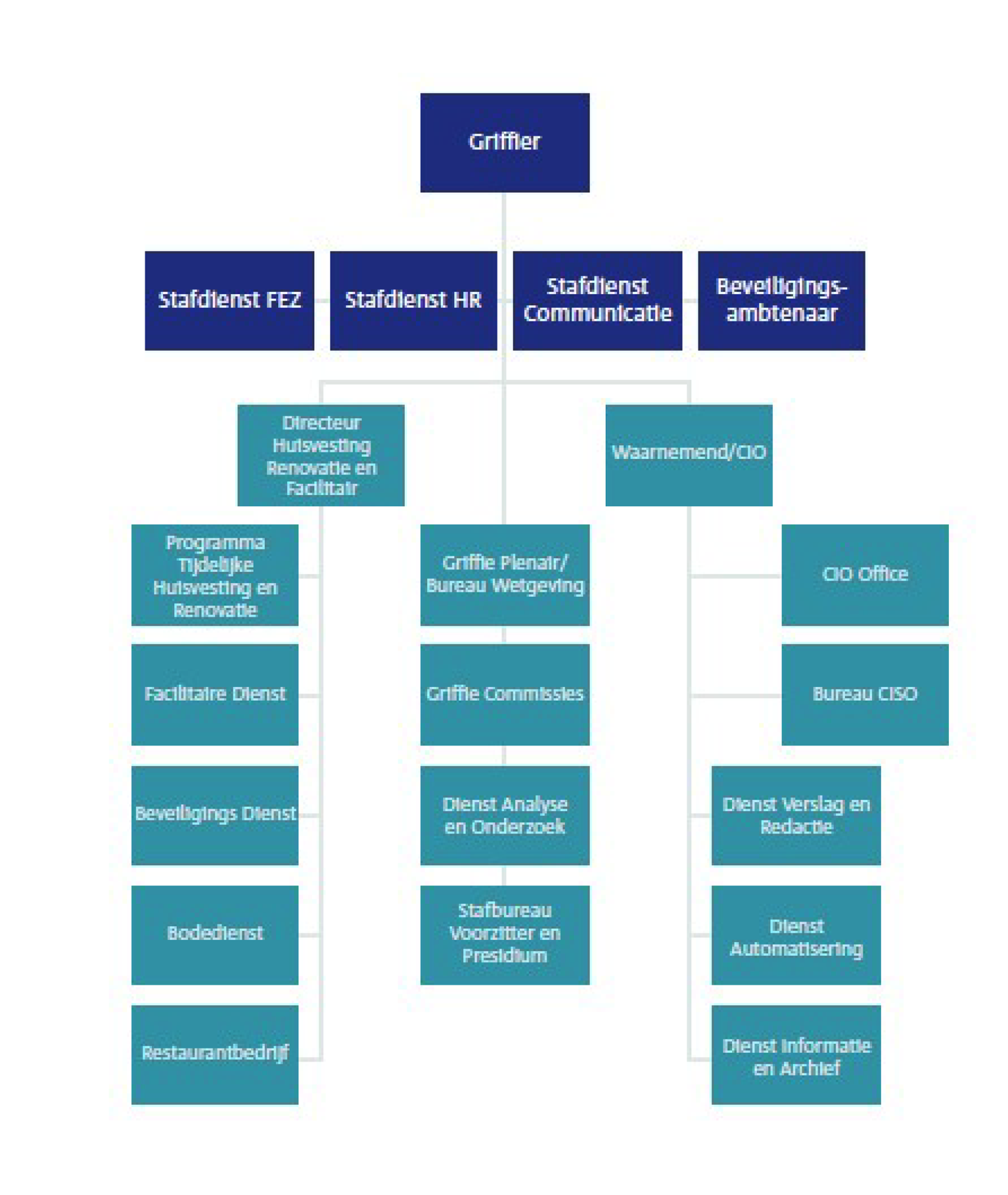 de Griffier of directeur met onder zich een aantal organisatieonderdelen;
