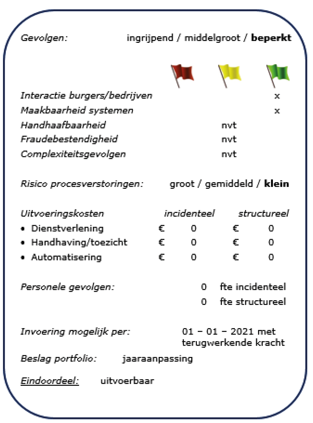 De betreffende toelichting kan tijdig worden gewijzigd in het online-aangifteprogramma en in de papieren formulieren voor de (definitieve) aangifte over 2021 die in het voorjaar van 2022 start.