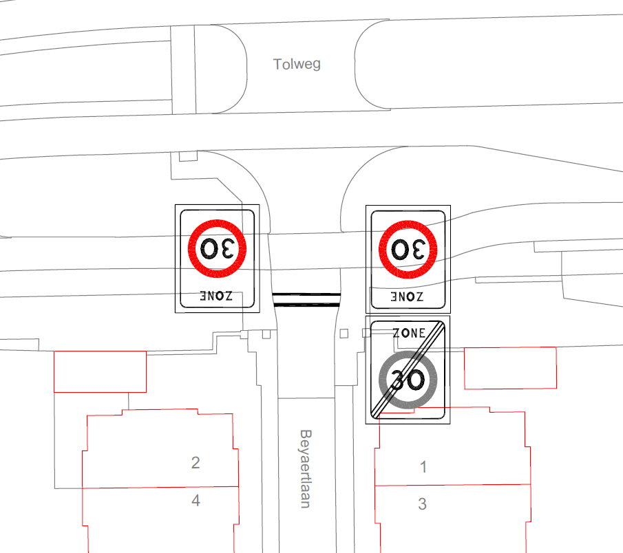 • dat het wenselijk is om op de Beyaertlaan een maximale snelheid in te stellen van 30 km per uur, vanaf huisnummer 1 en 2 komende vanaf de Tolweg;