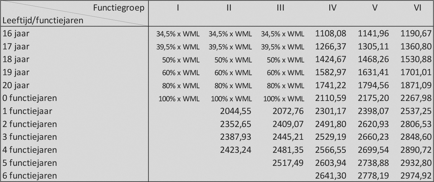 het salaris per maand volgens de salarisschaal per maand in artikel 31.