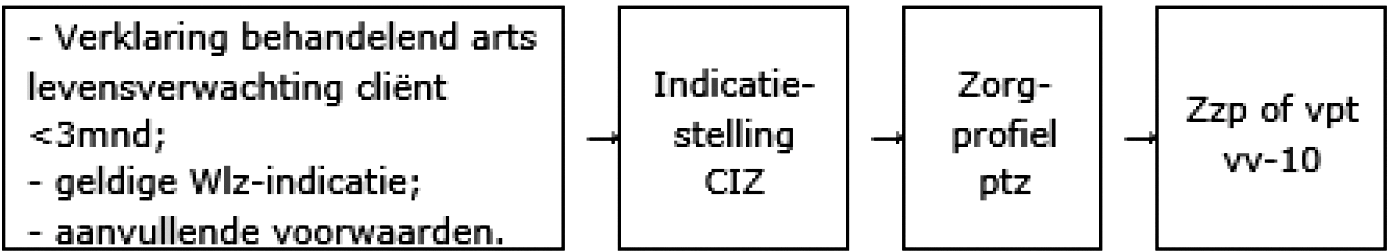 Hieronder wordt schematisch weergegeven wat er wijzigt voor een palliatief terminale cliënt die de zorg afneemt in de vorm van een vpt of zzp.