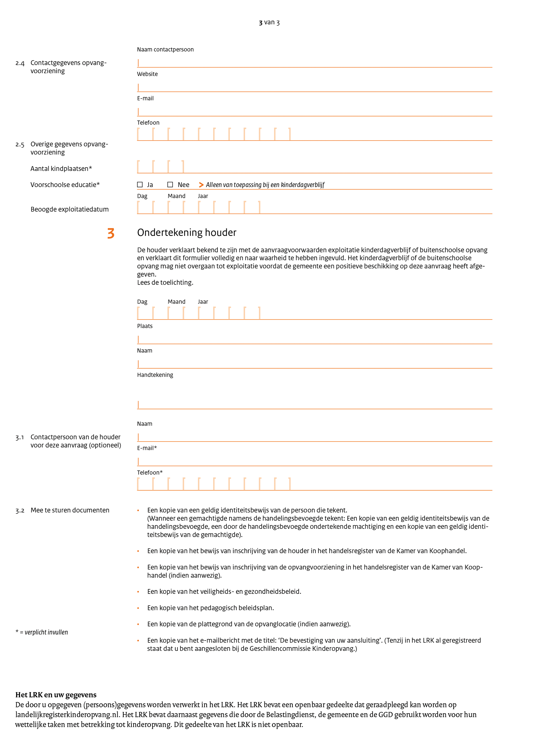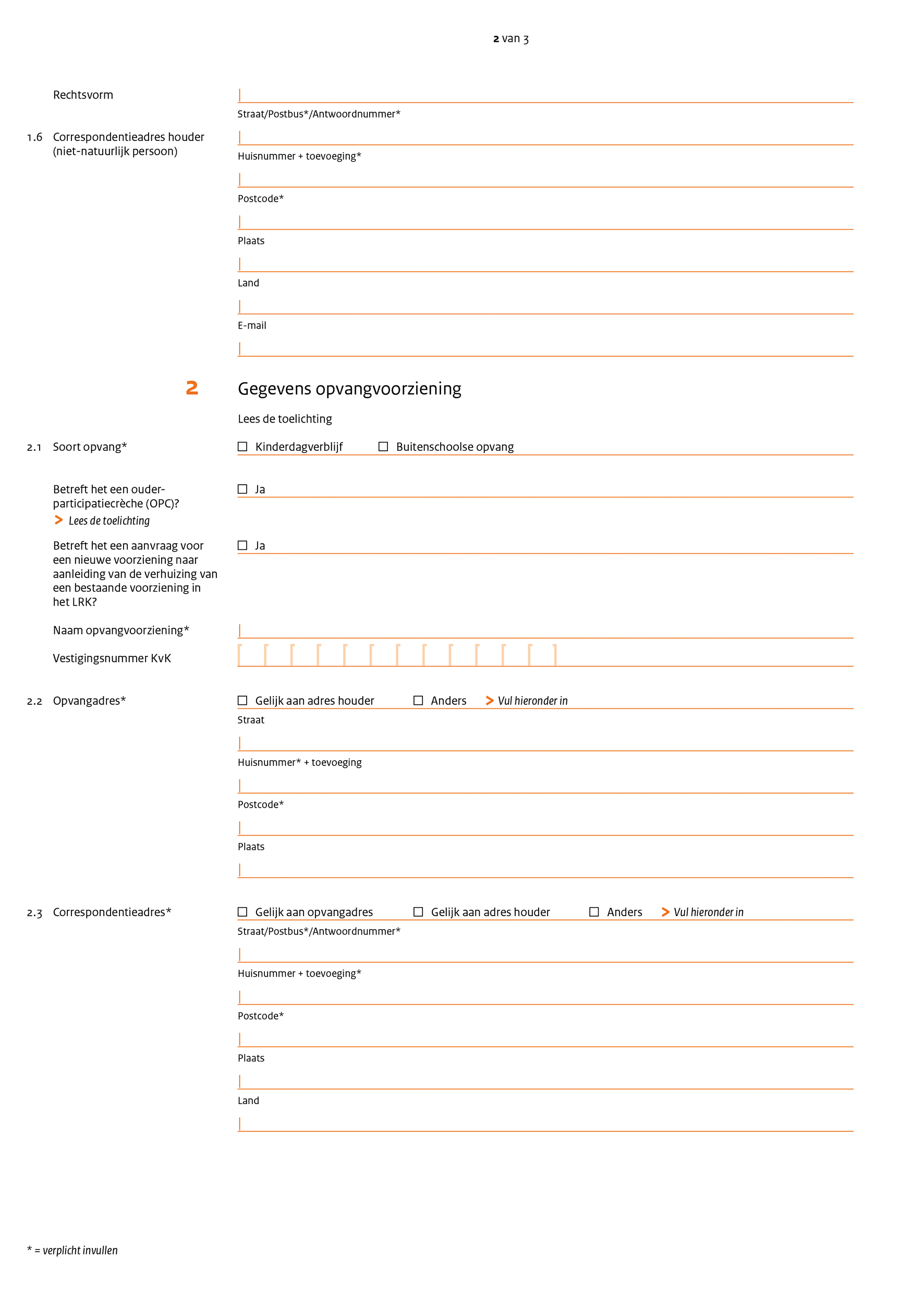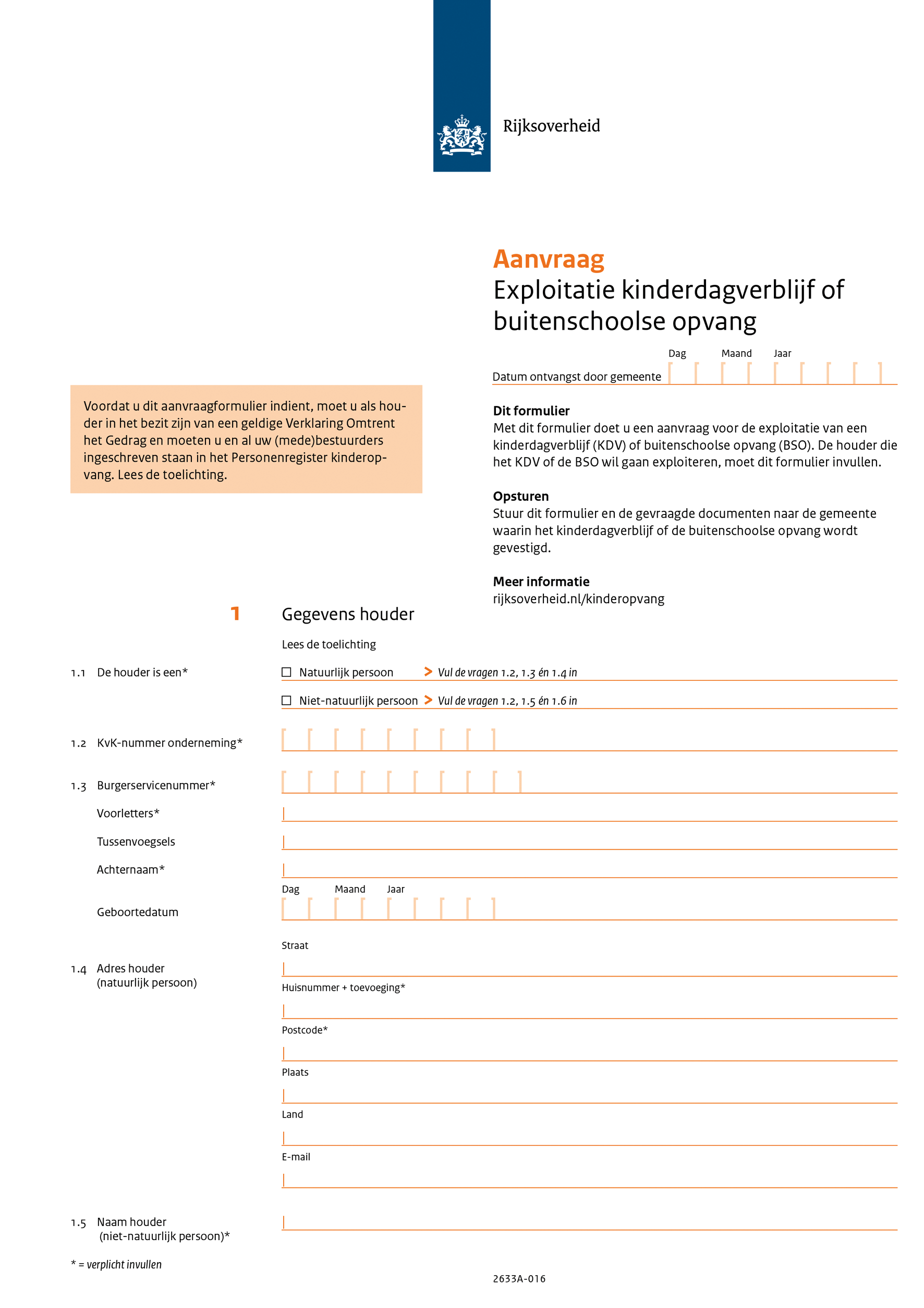 In de aanvraagformulieren voor exploitatie kinderdagverblijf of