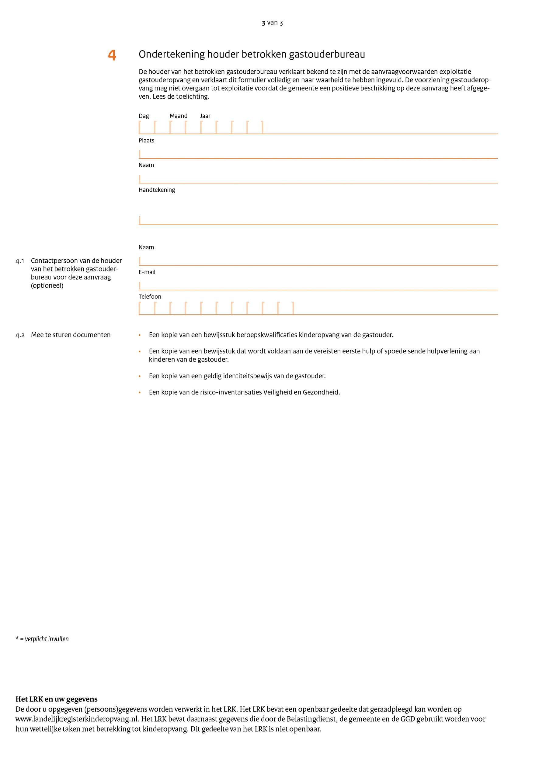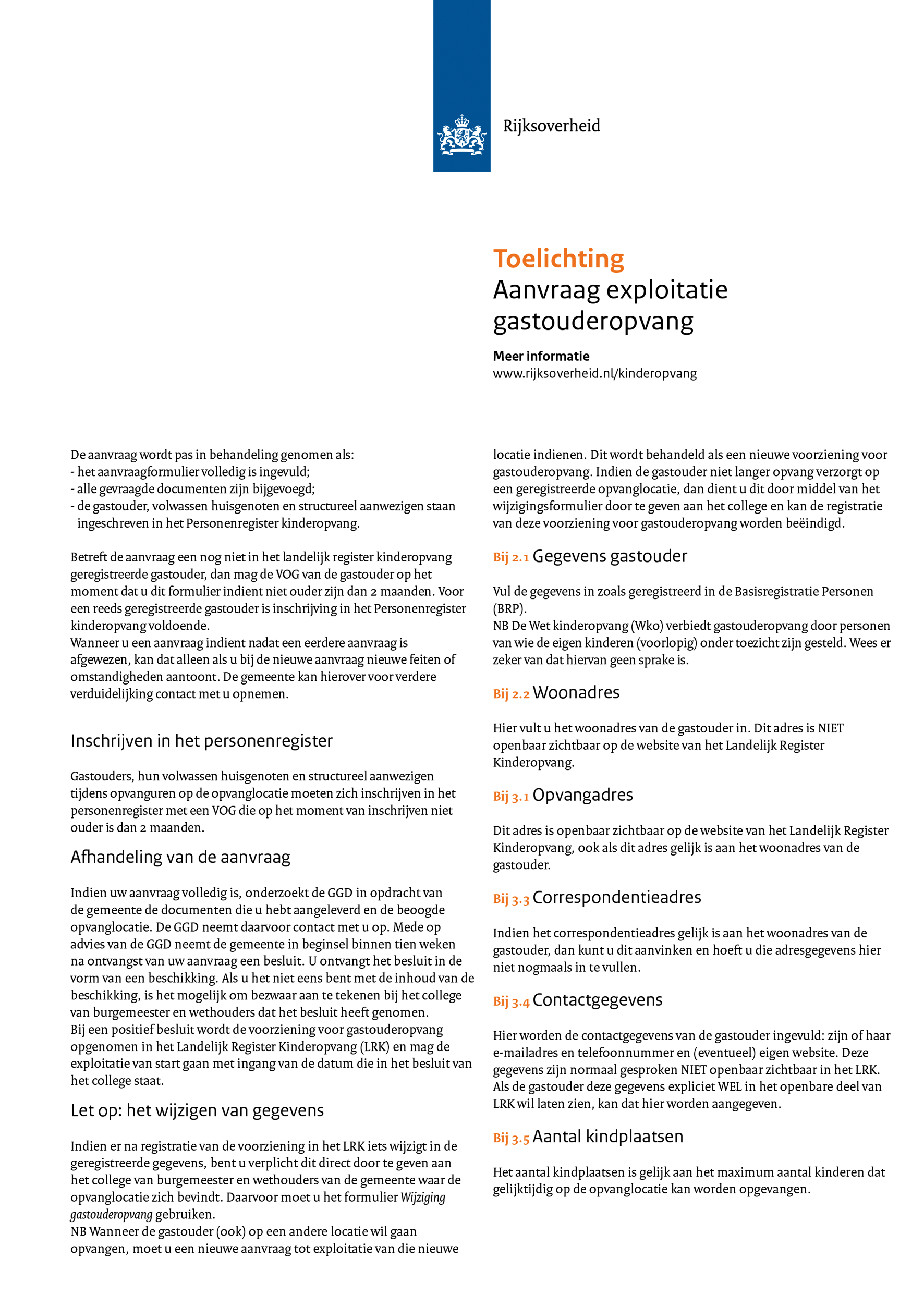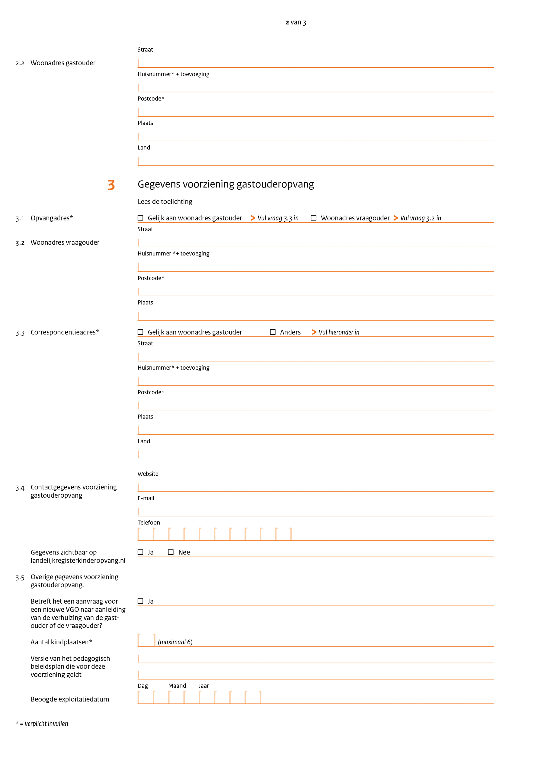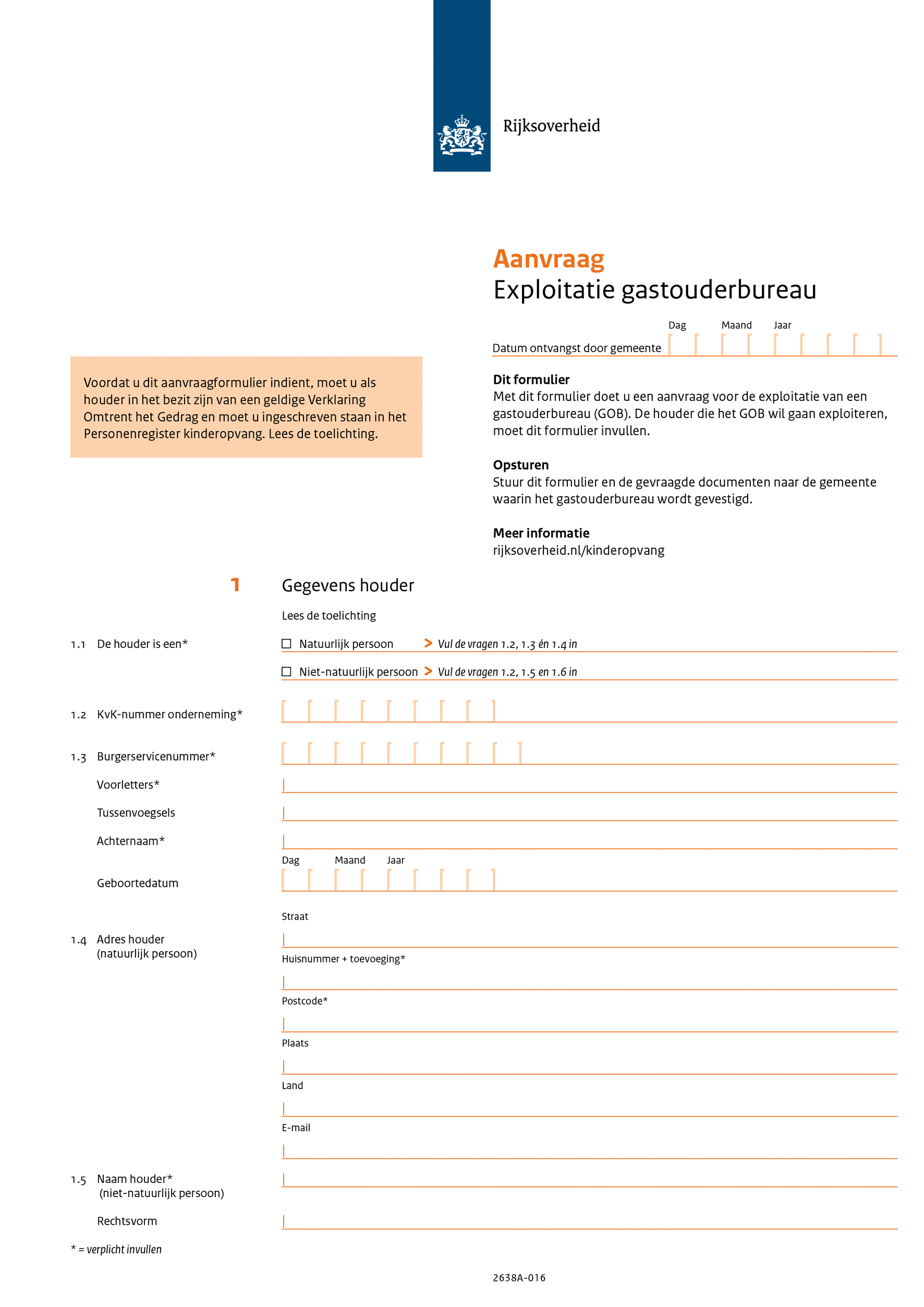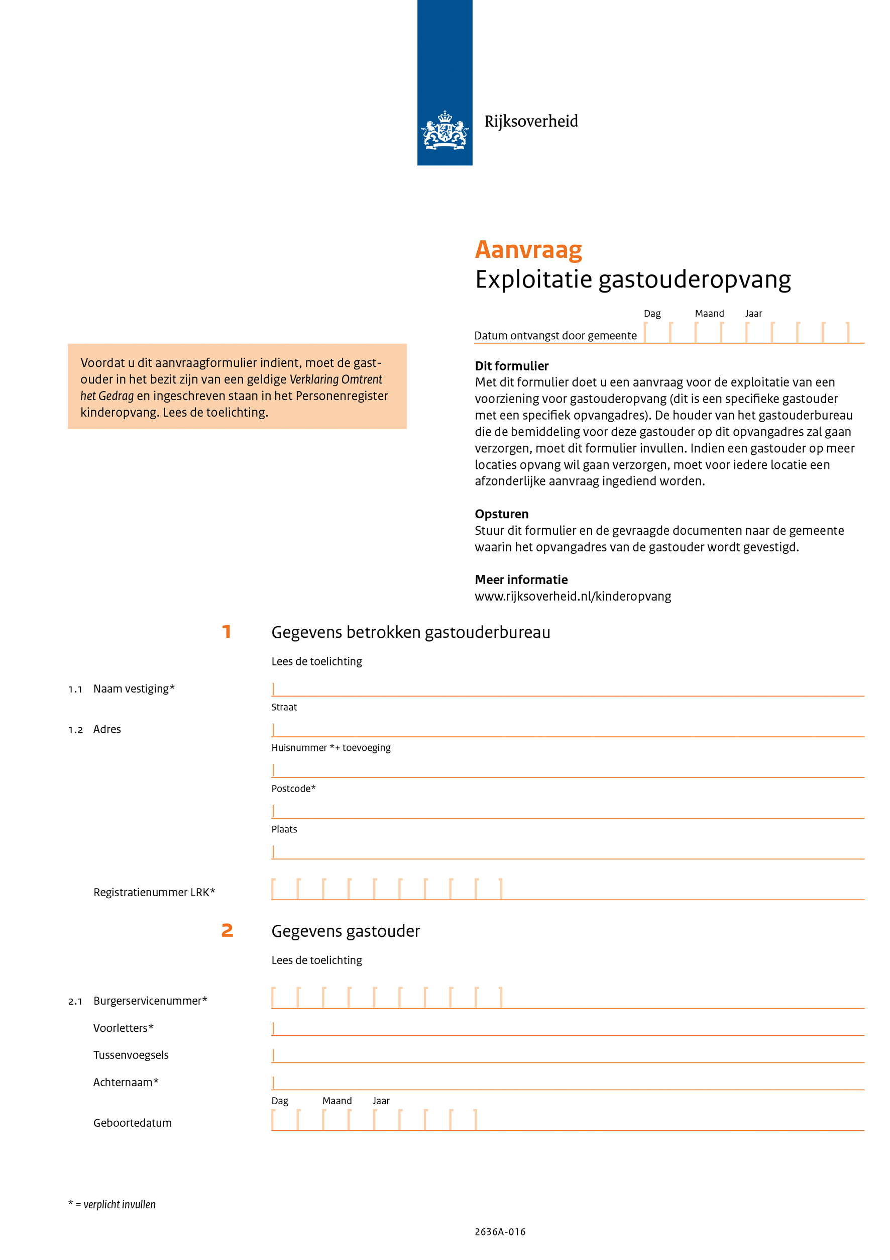 In het aanvraagformulier voor exploitatie van gastouderopvang is