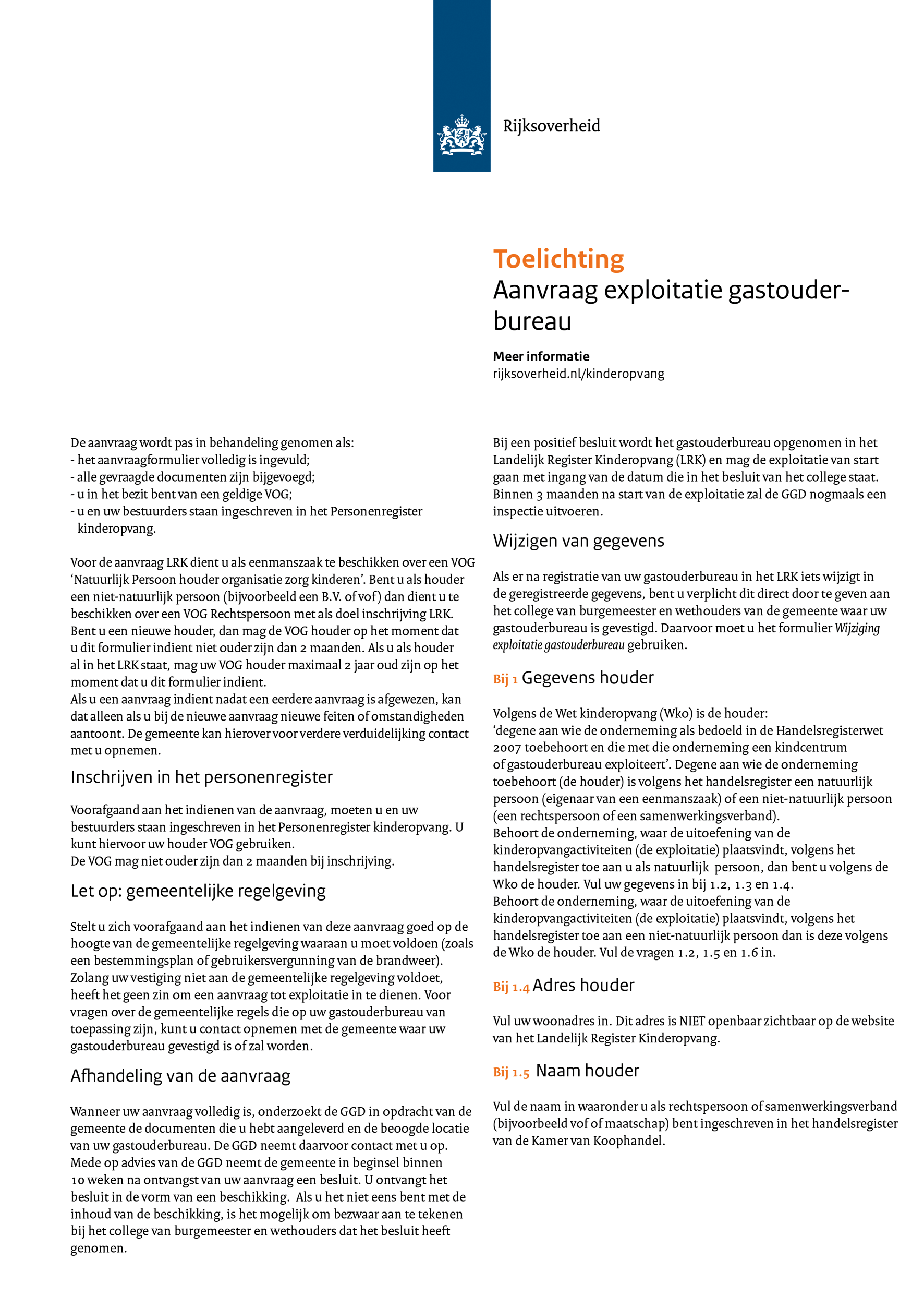 buitenschoolse opvang), 2 (Aanvraag exploitatie gastouderbureau), 3 (Aanvraag