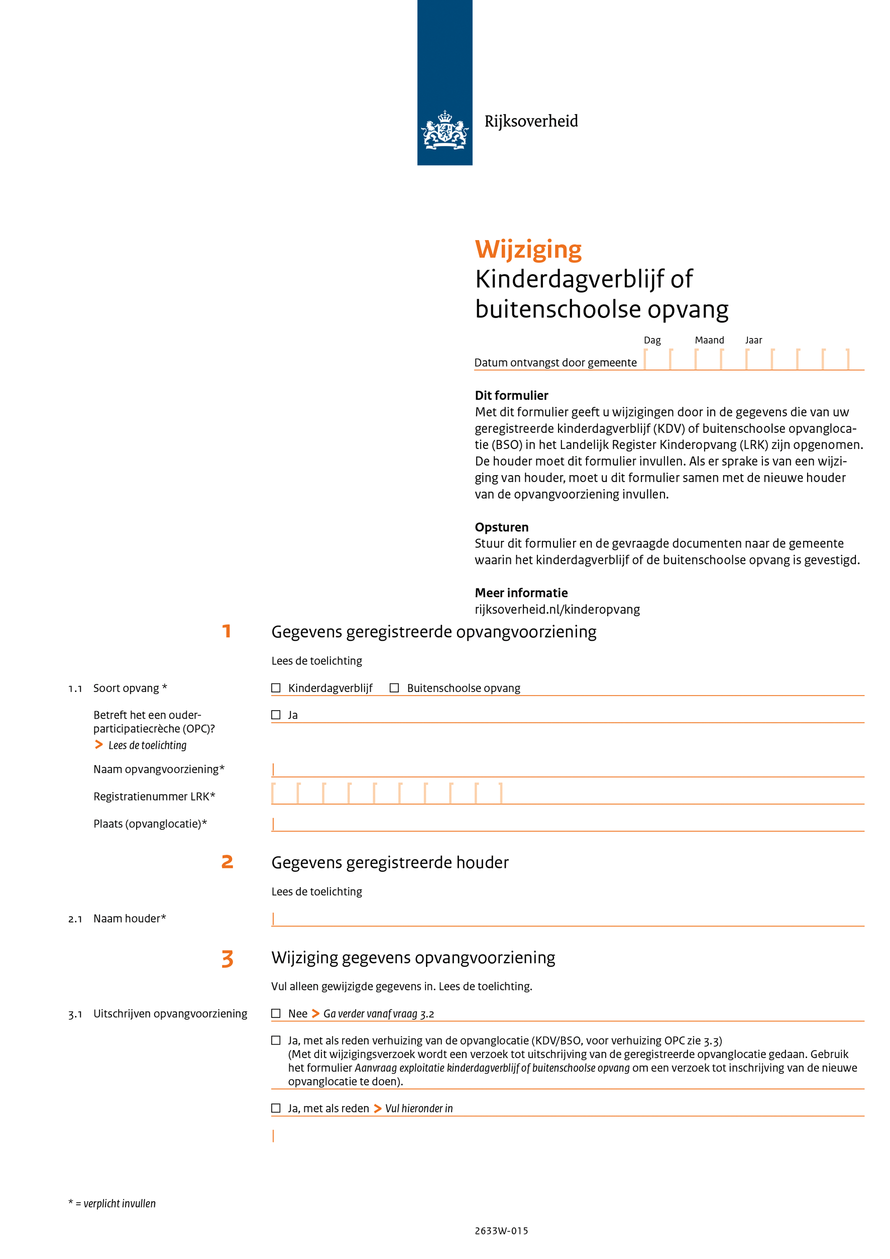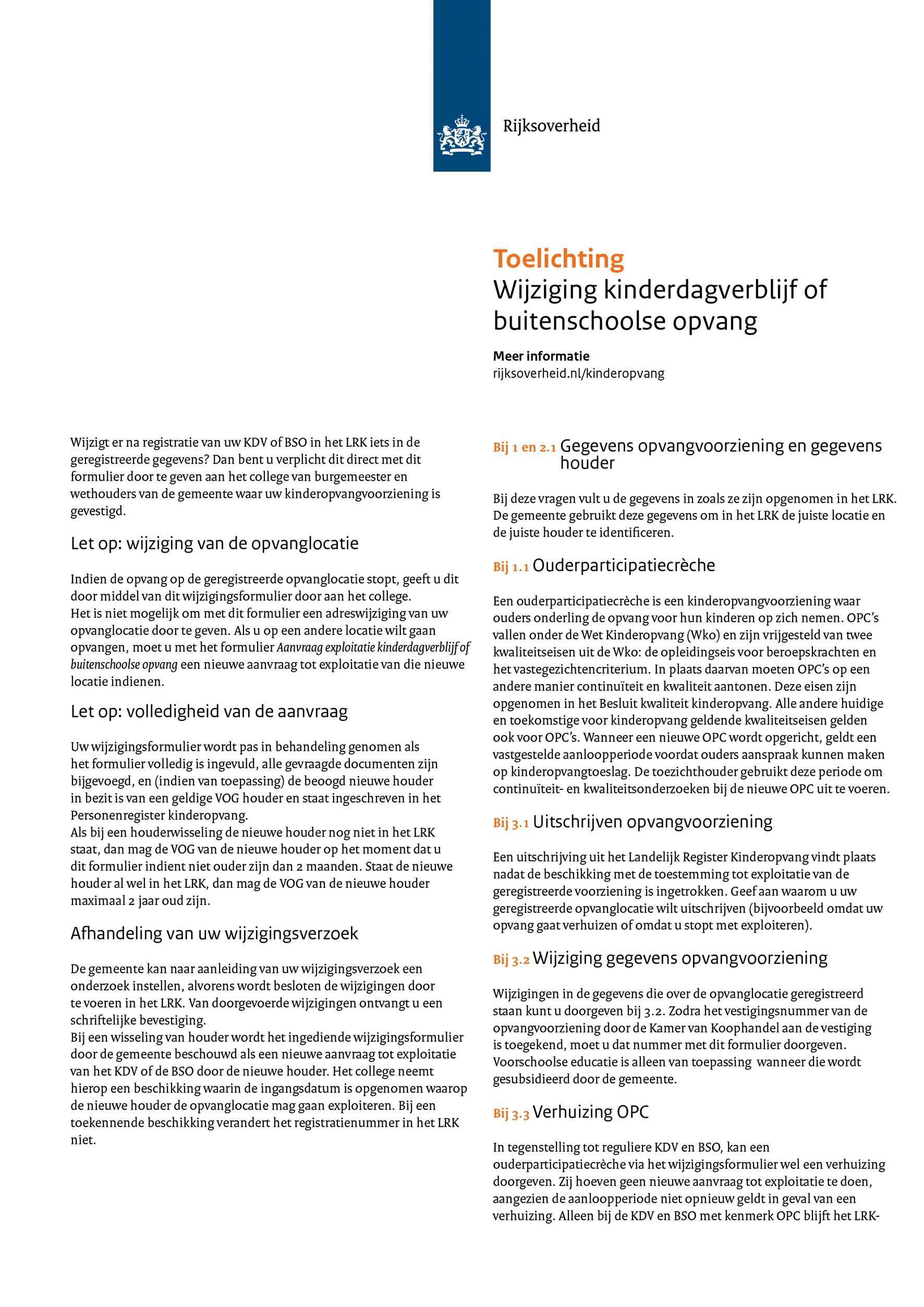 kinderdagverblijf of buitenschoolse opvang. Het woord ‘wijziging’ wordt bij de