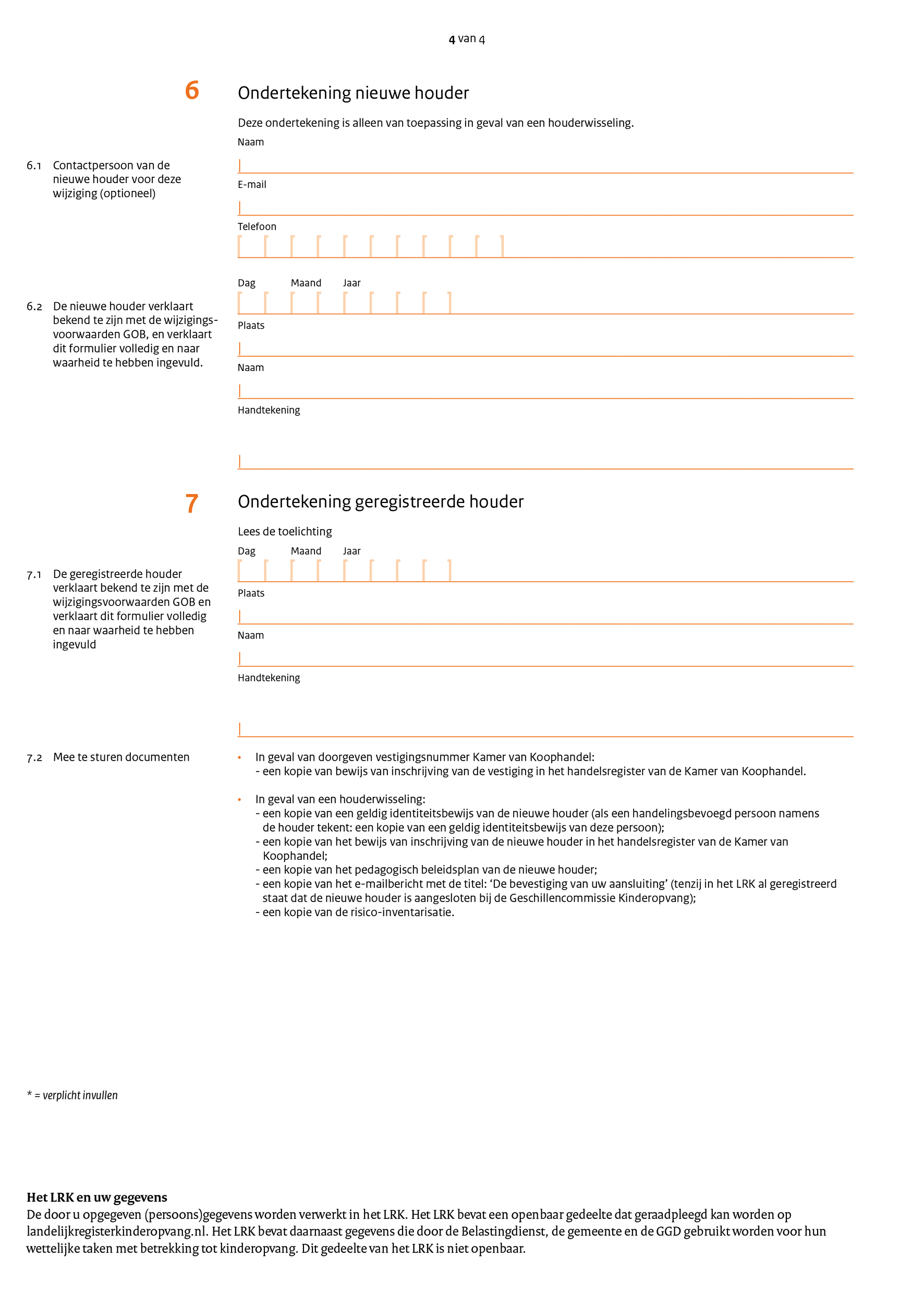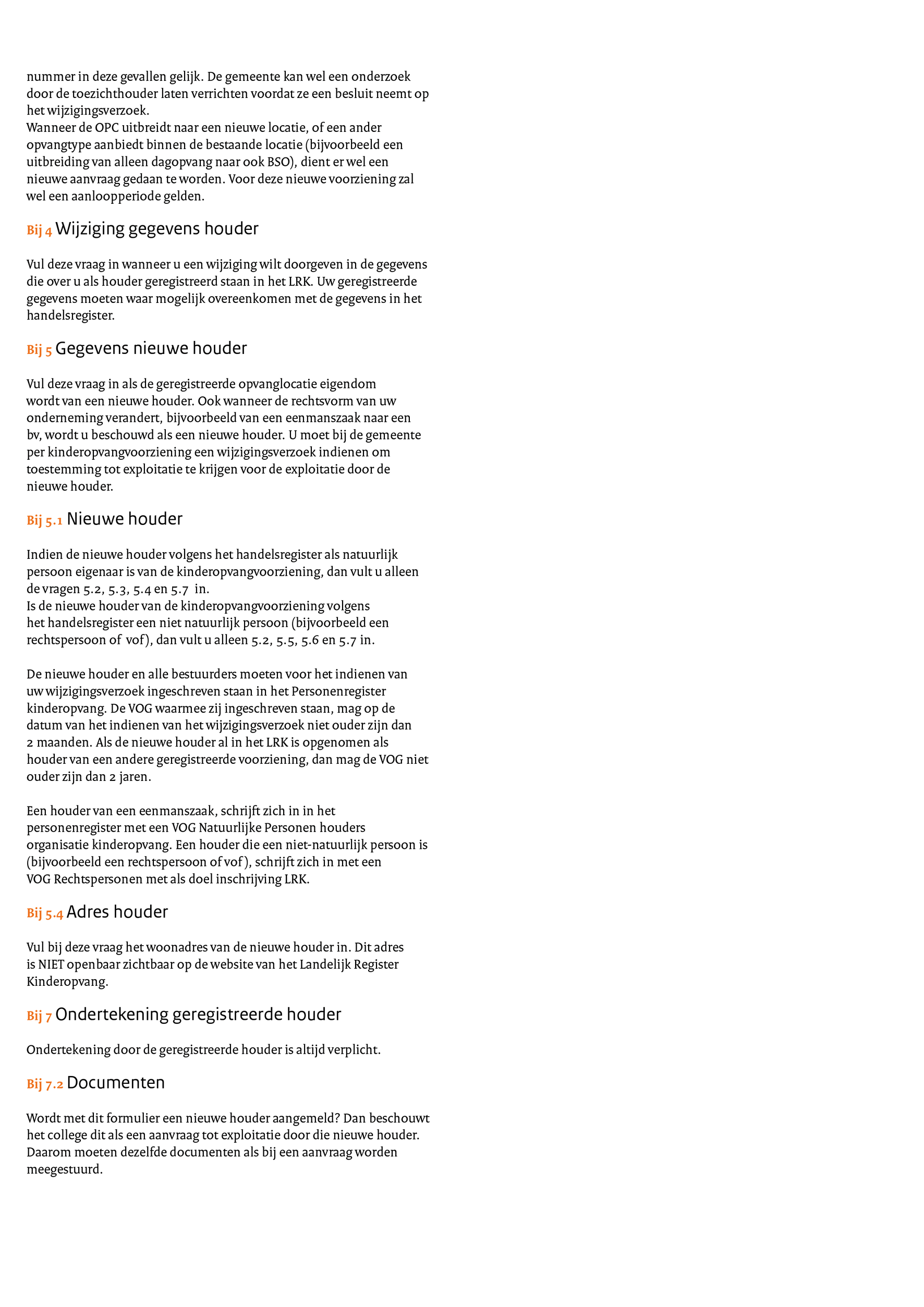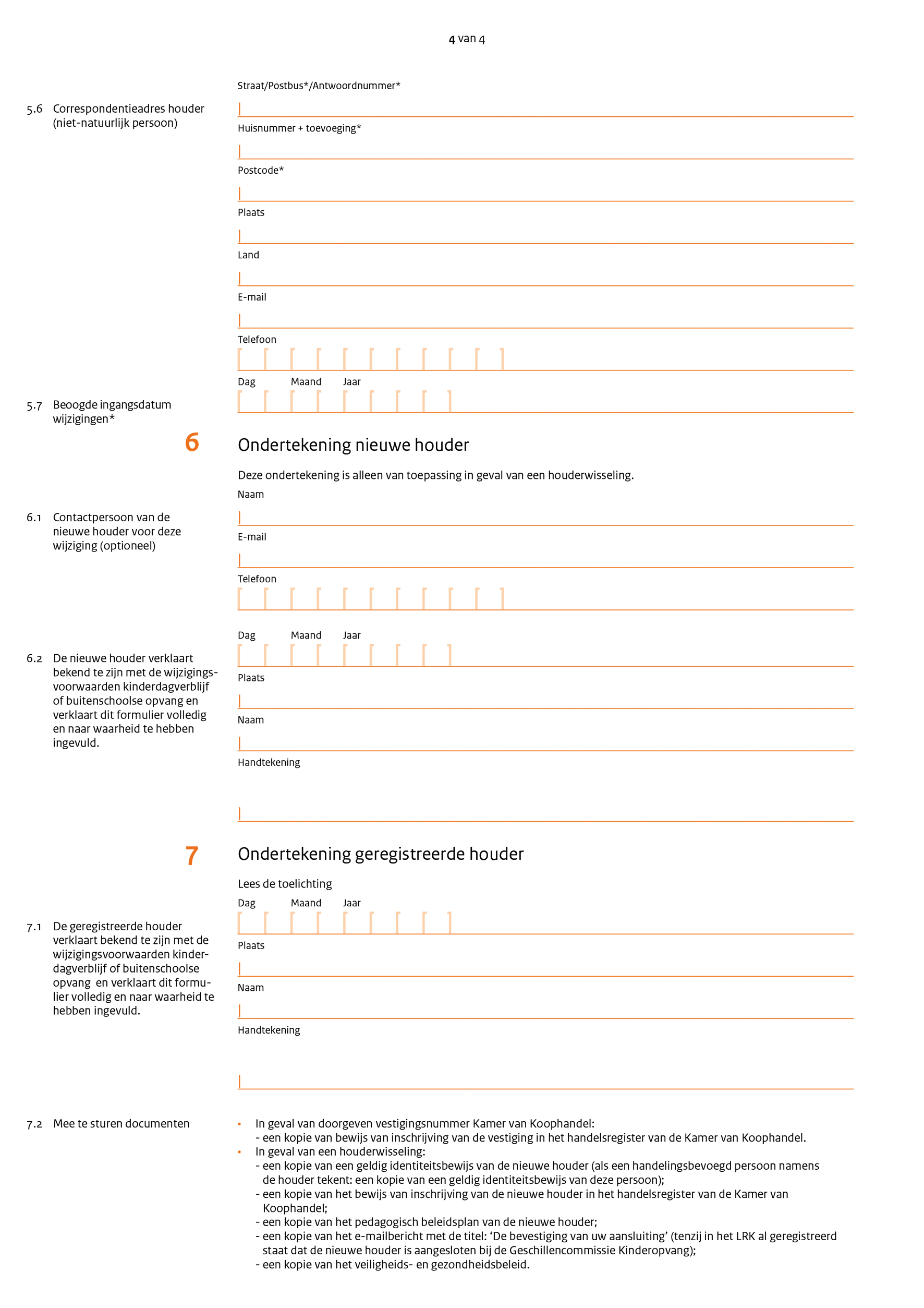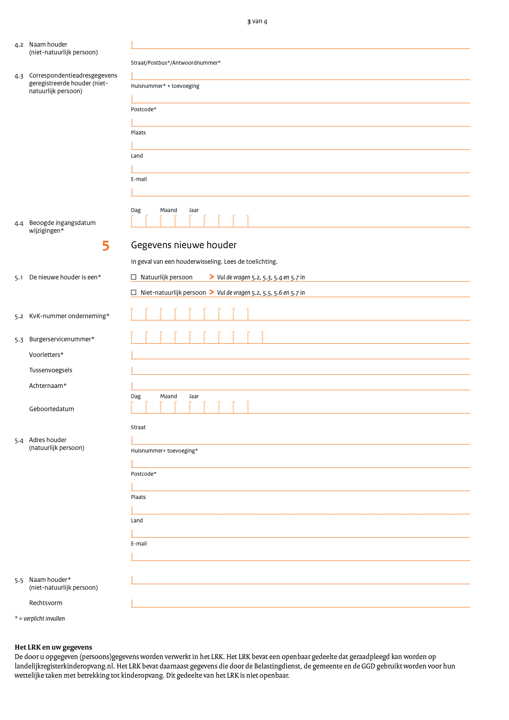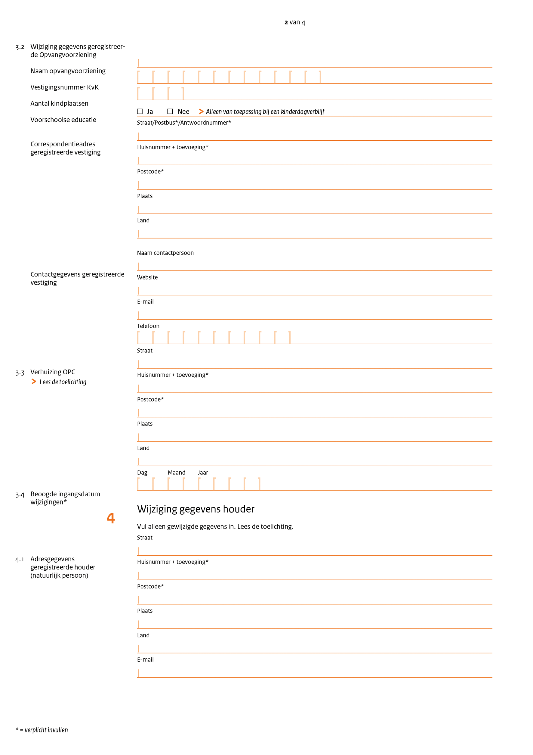 exploitatie gastouderopvang), 4 (Wijziging kinderdagverblijf of buitenschoolse