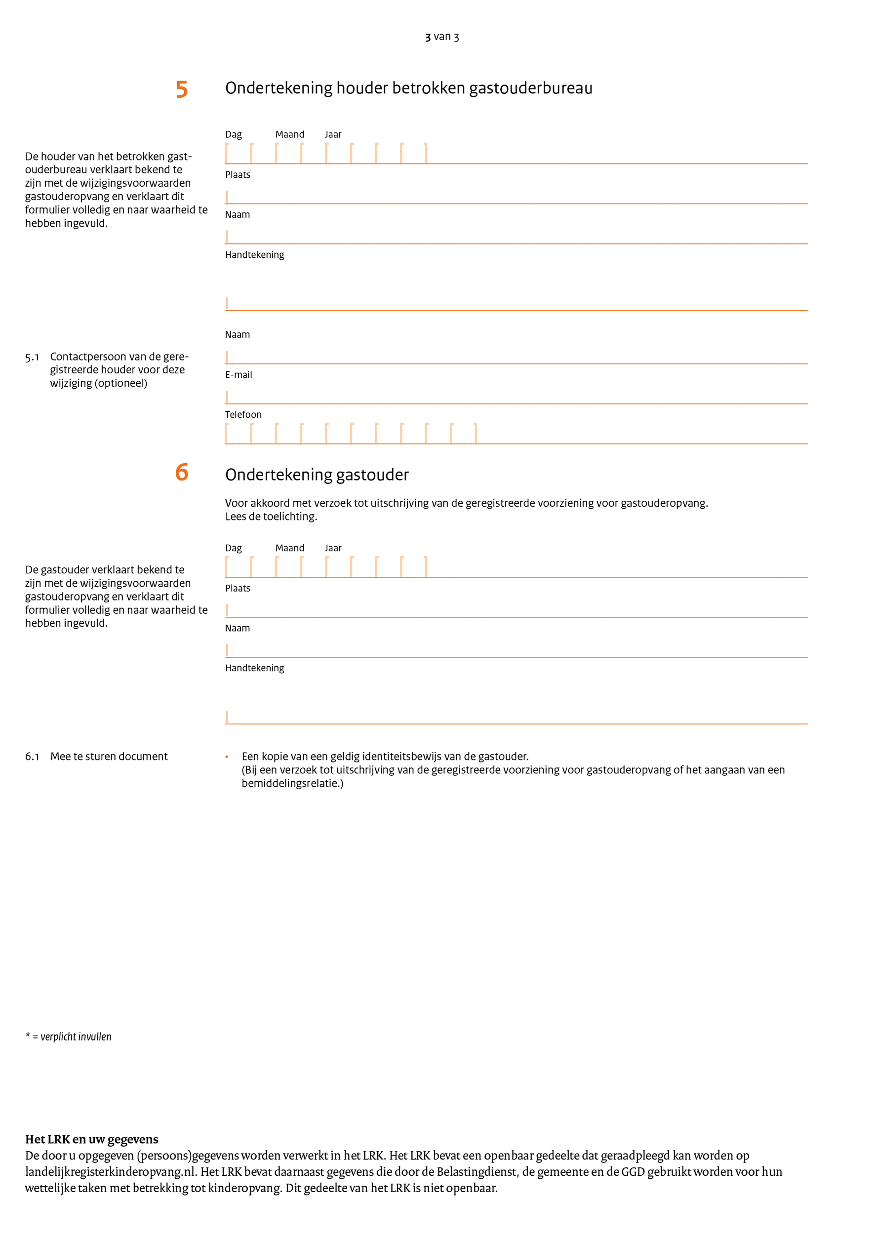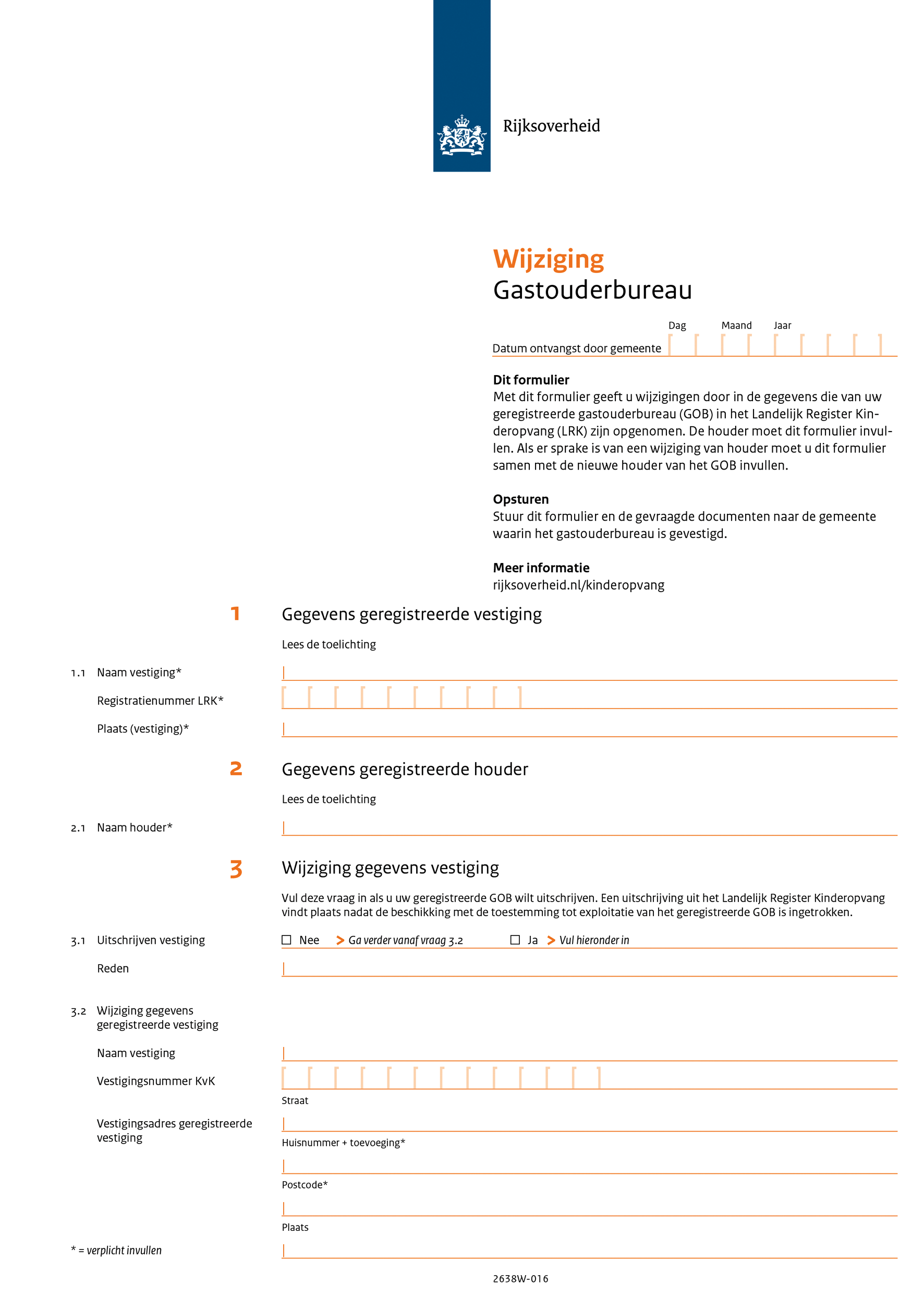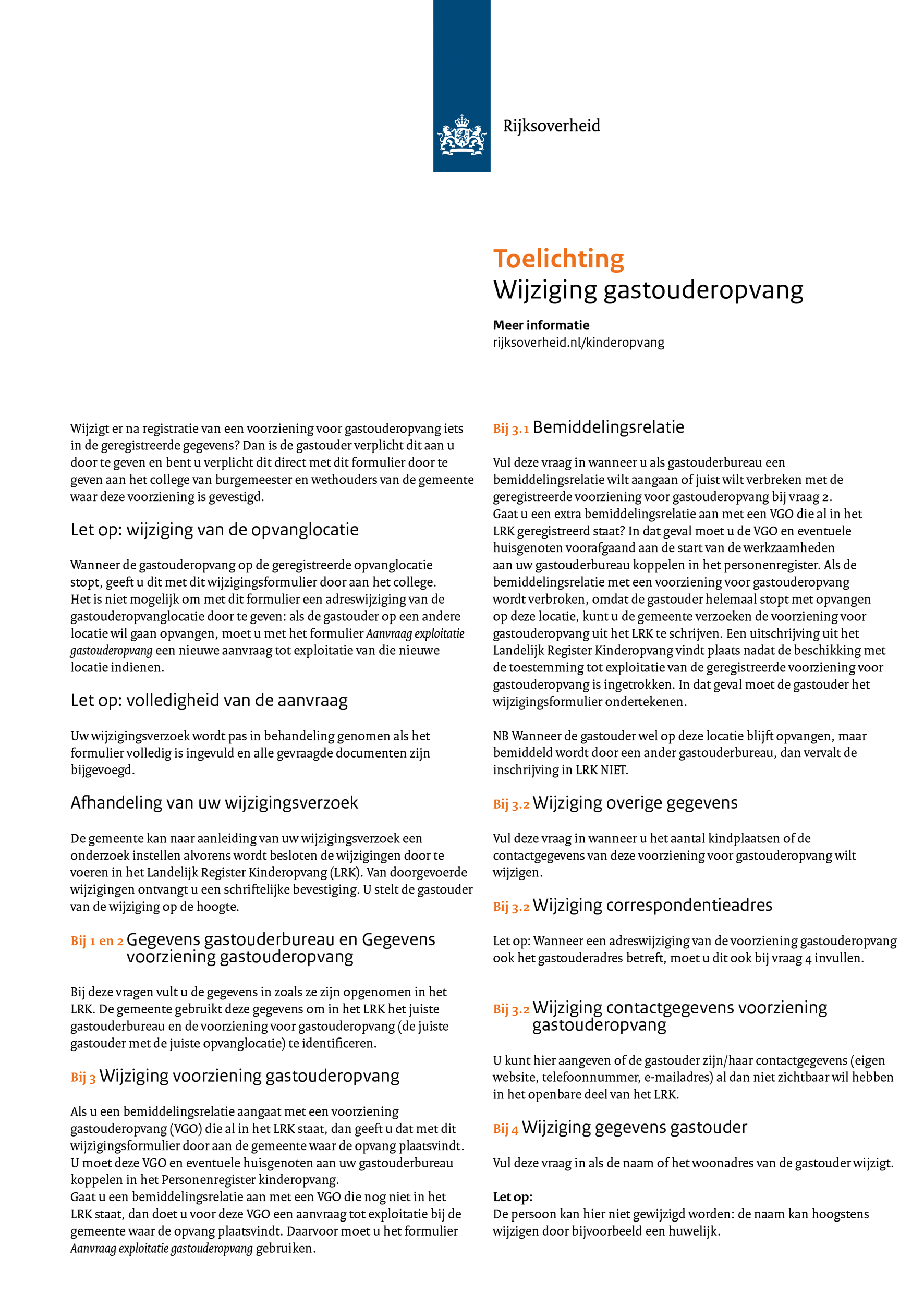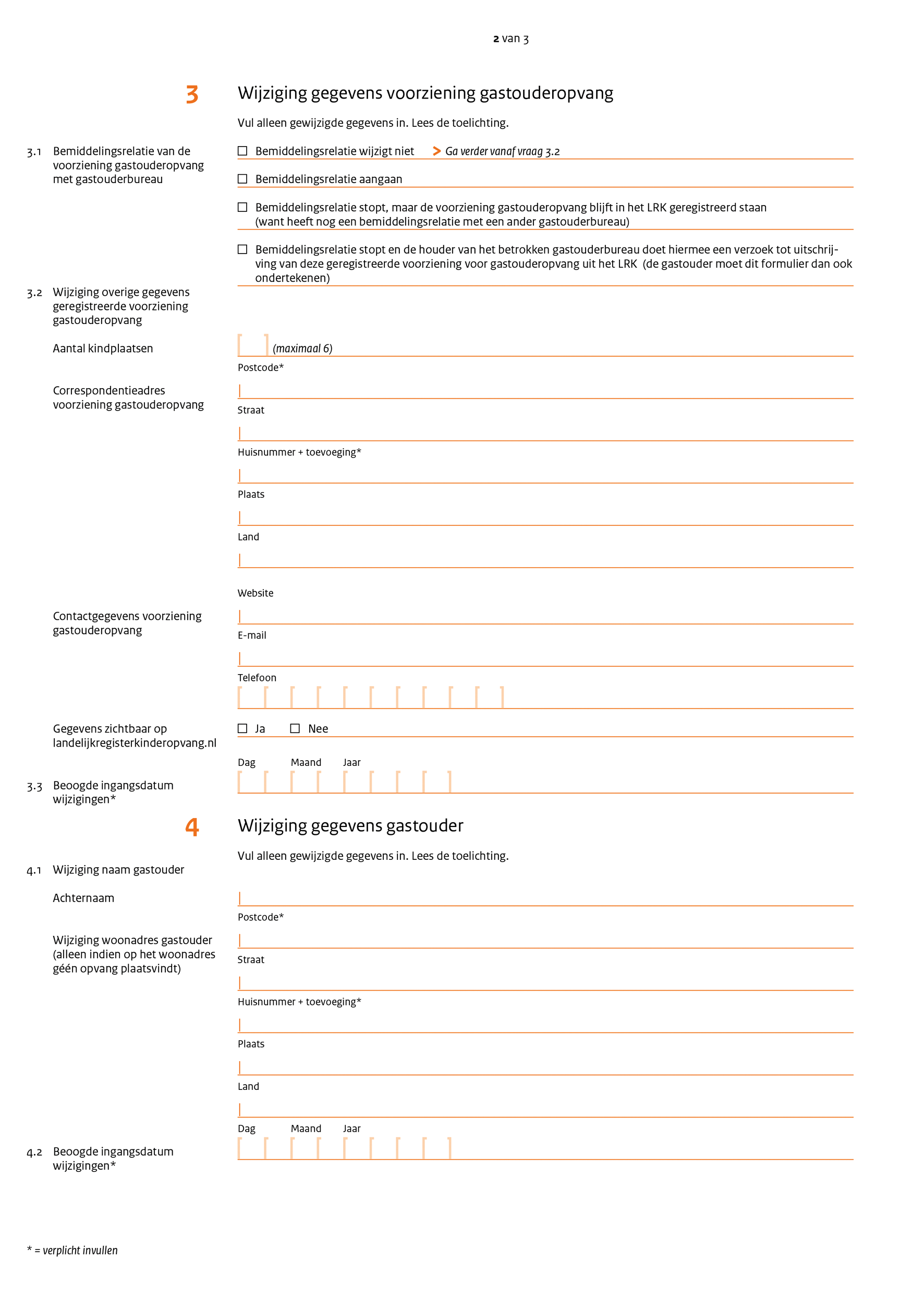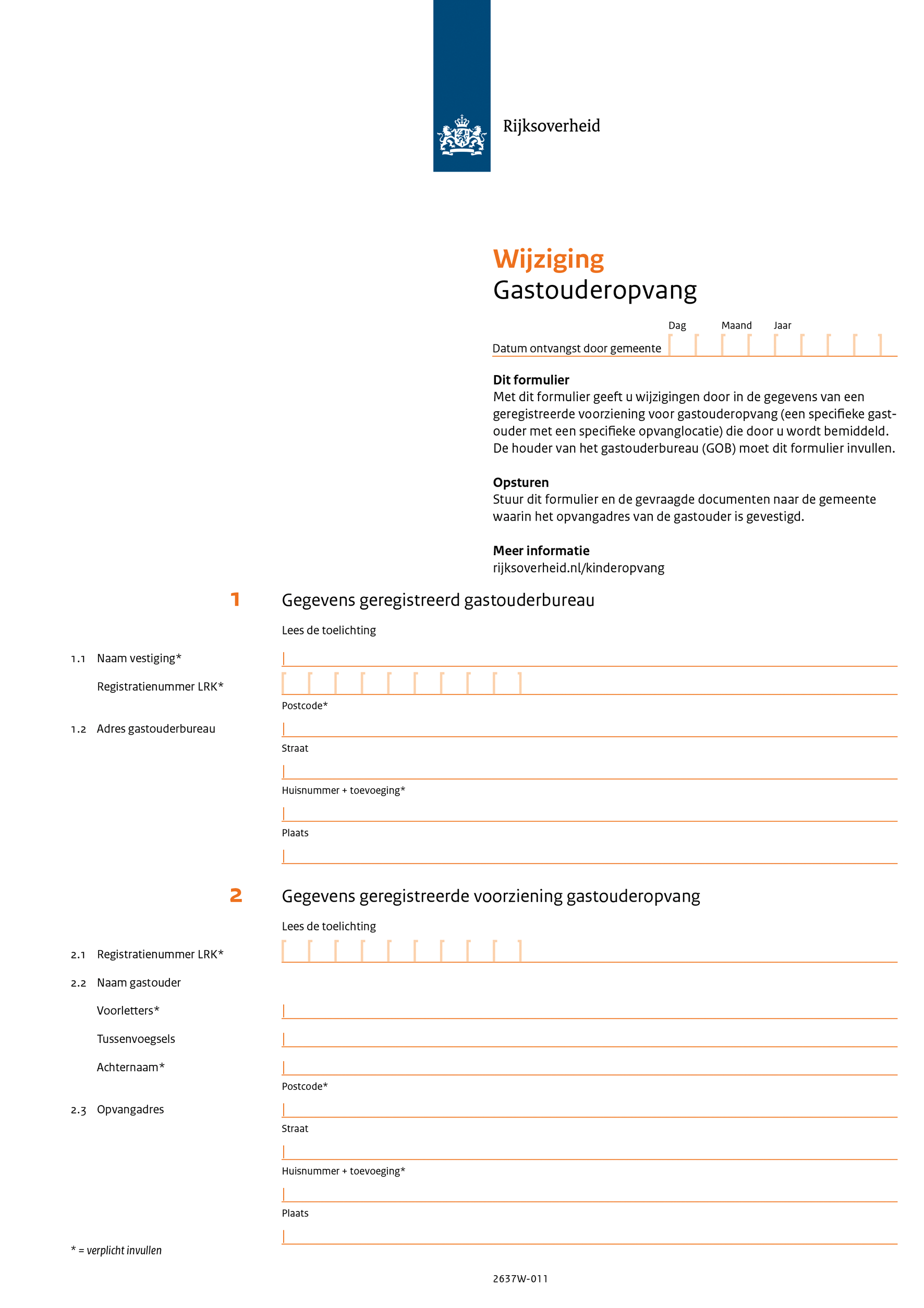 gastouderopvang wordt gelijkgetrokken met het wijzigingsformulier voor een