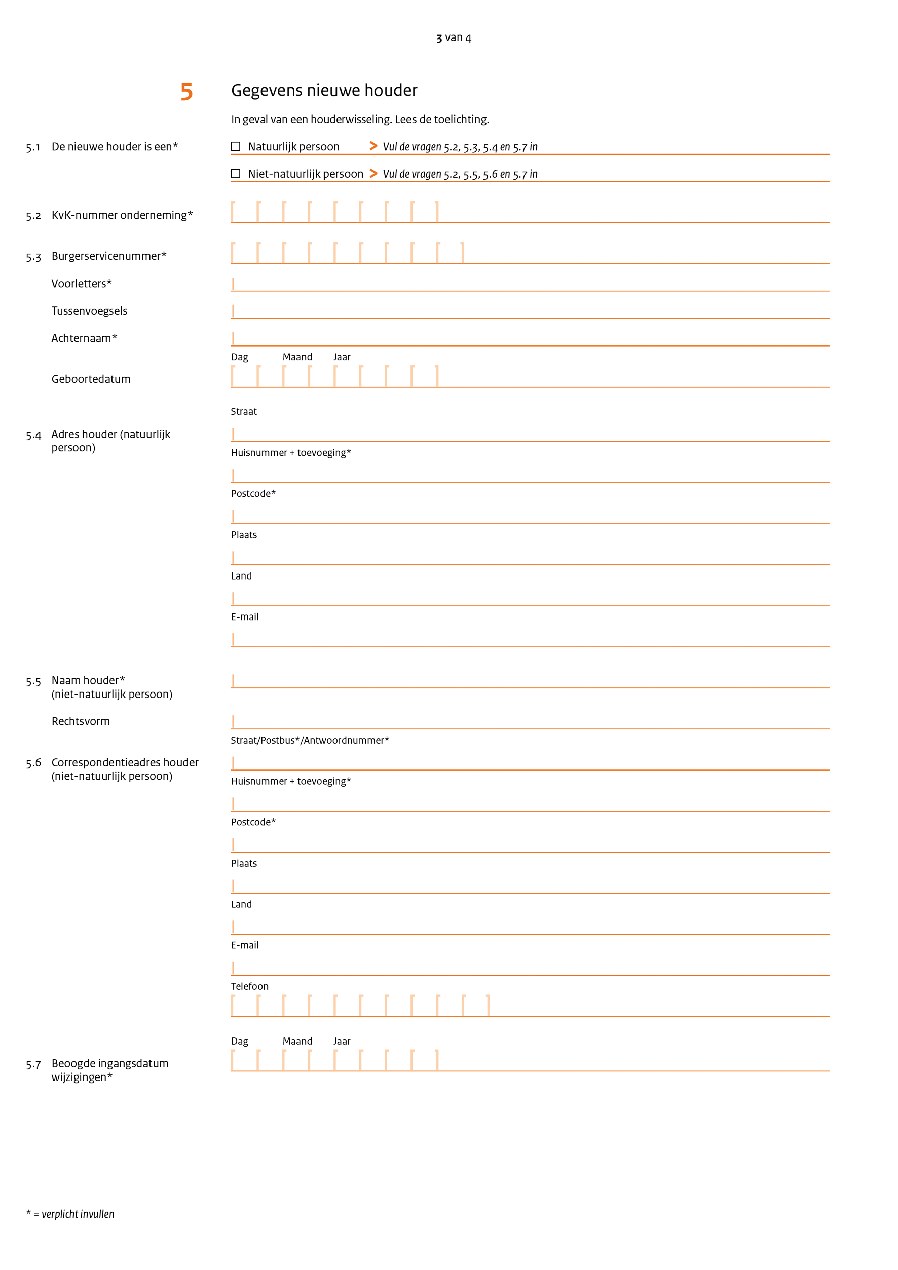 Staatscourant zijn de aanvraag- en wijzigingsformulieren te vinden op