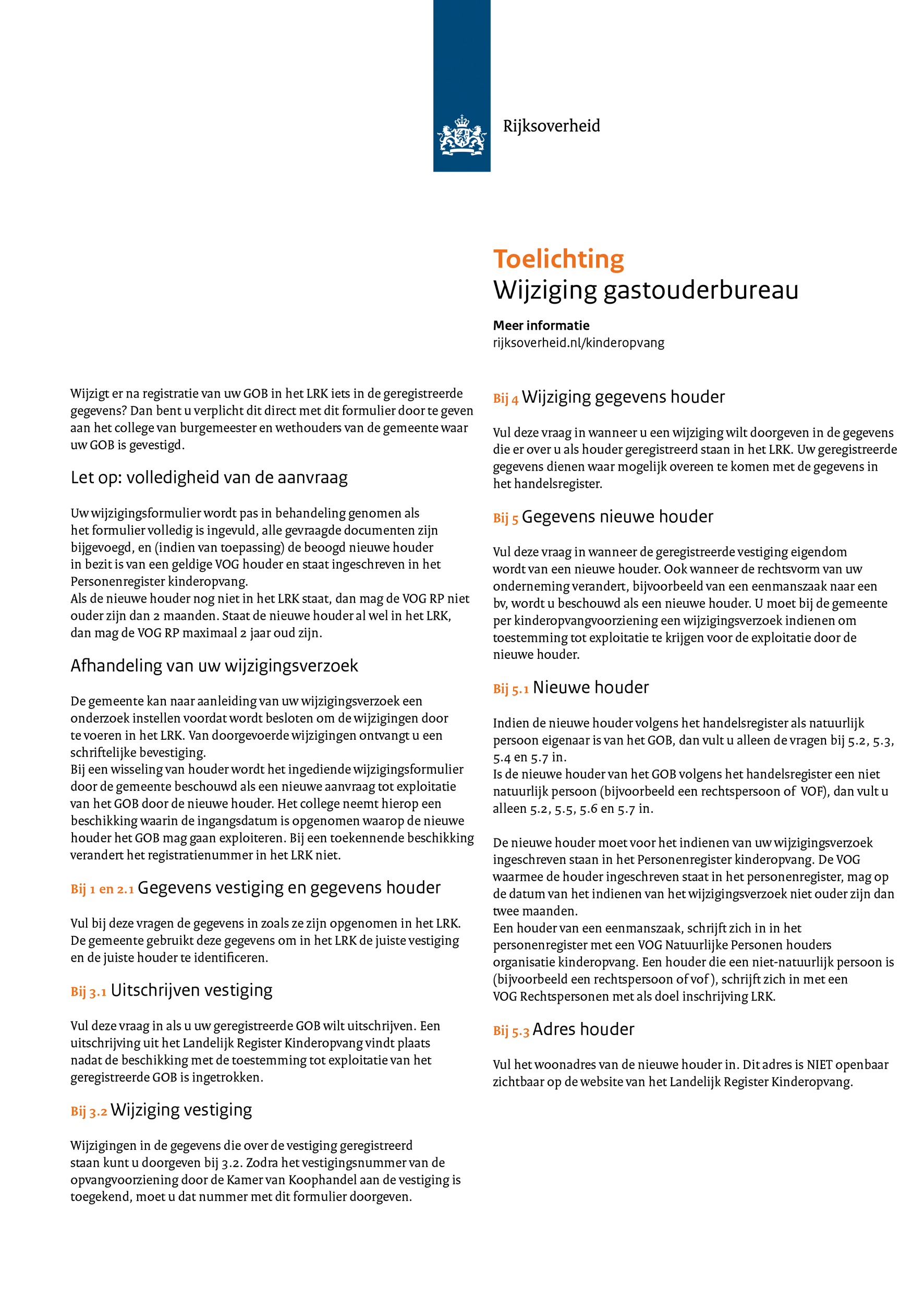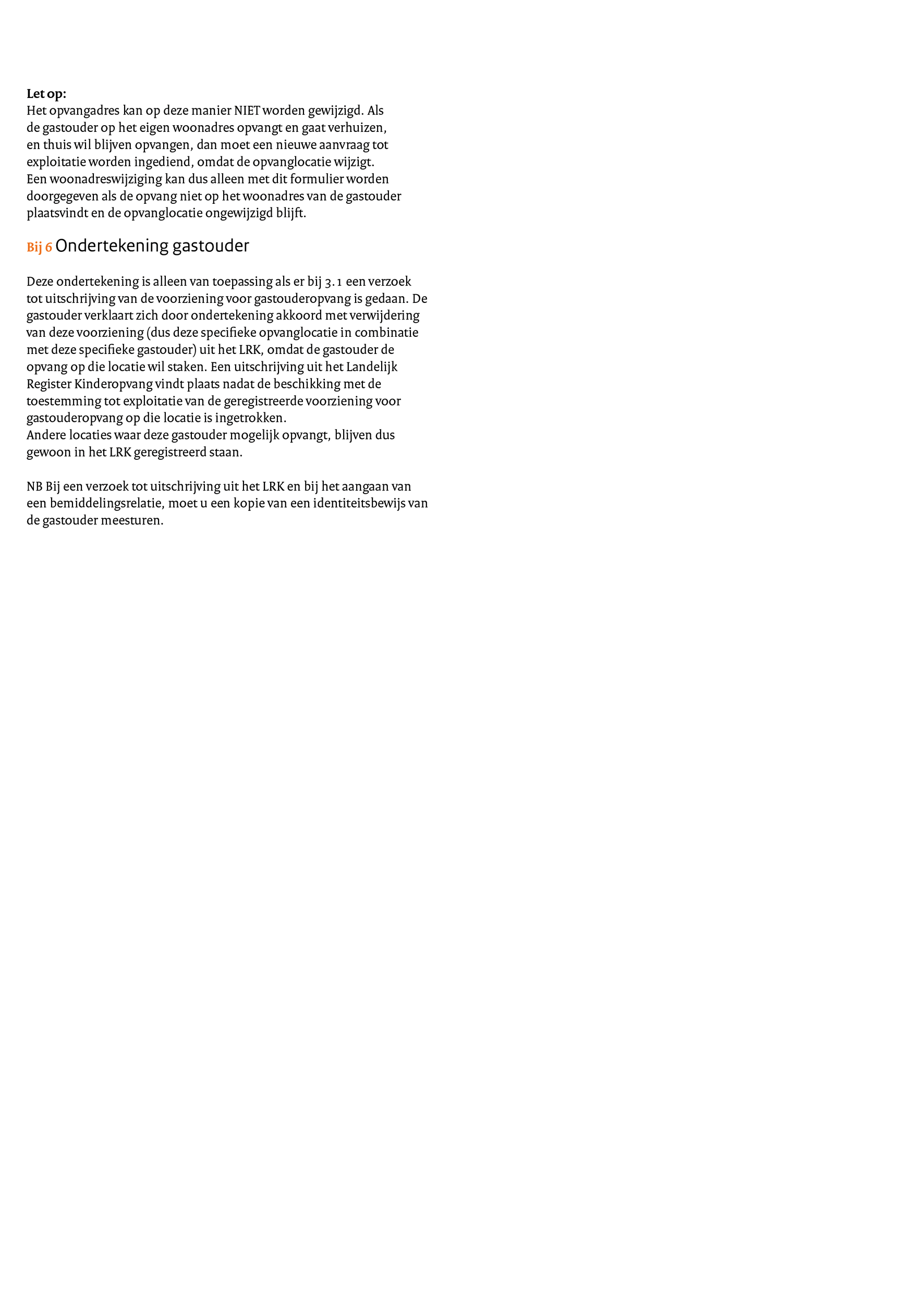opvang), 5 (Wijziging gastouderbureau) en 6 (Wijziging gastouderopvang) bij de