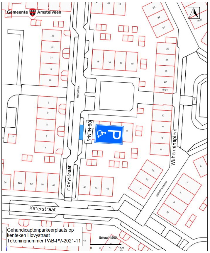Burgemeester en wethouders van Amstelveen besluiten het parkeren te verbieden op een parkeerplaats in de Hovystraat, zoals aangegeven op tekening PAB-PV-2021-11, met uitzondering van het voertuig met het kenteken 09-NLN-5 (gehandicaptenparkeerplaats).