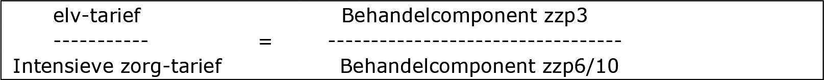 Hierbij is verondersteld dat de verdiencapaciteit van tariefgereguleerde zorg gelijk is aan die van niet-tariefgereguleerde zorg. Vrij vertaald: elke euro inkomsten vanuit tariefgereguleerde zorg levert evenveel winst op als een euro omzet uit niet-tariefgereguleerde zorg.