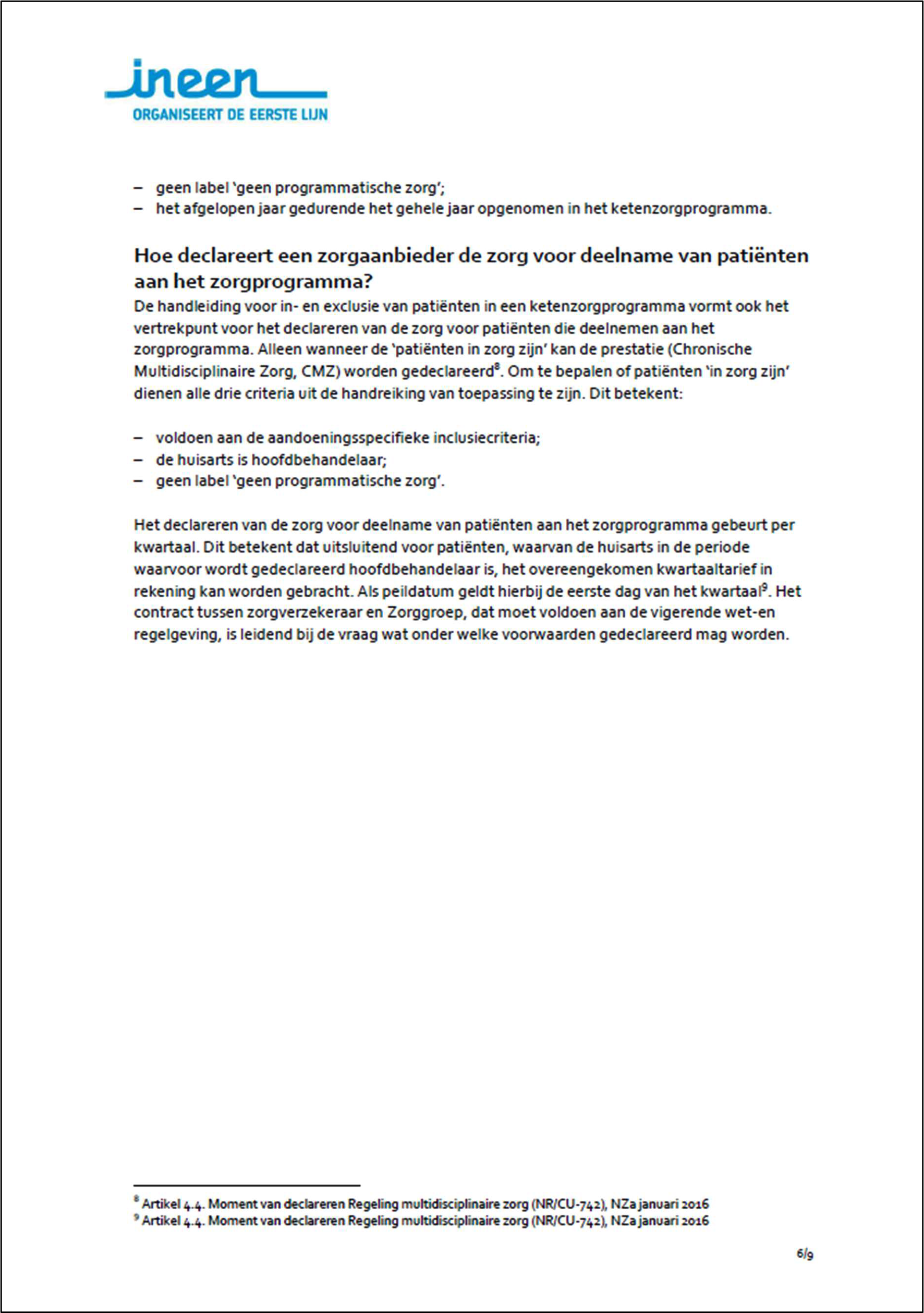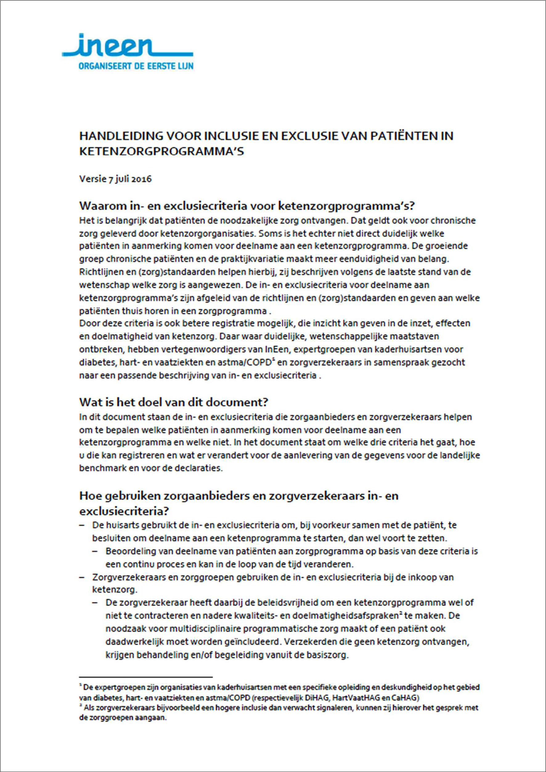 Voor een verdere toelichting op de achtergronden van de introductie van deze prestaties verwijzen wij naar de rapporten “Een sterke eerste lijn voor betere zorg en beheersbare kosten” en “Impactanalyse O&I”. Beide documenten: https://ineen.nl/programmas/bekostiging-en-bedrijfsvoering/organisatie-en-infrastructuur/