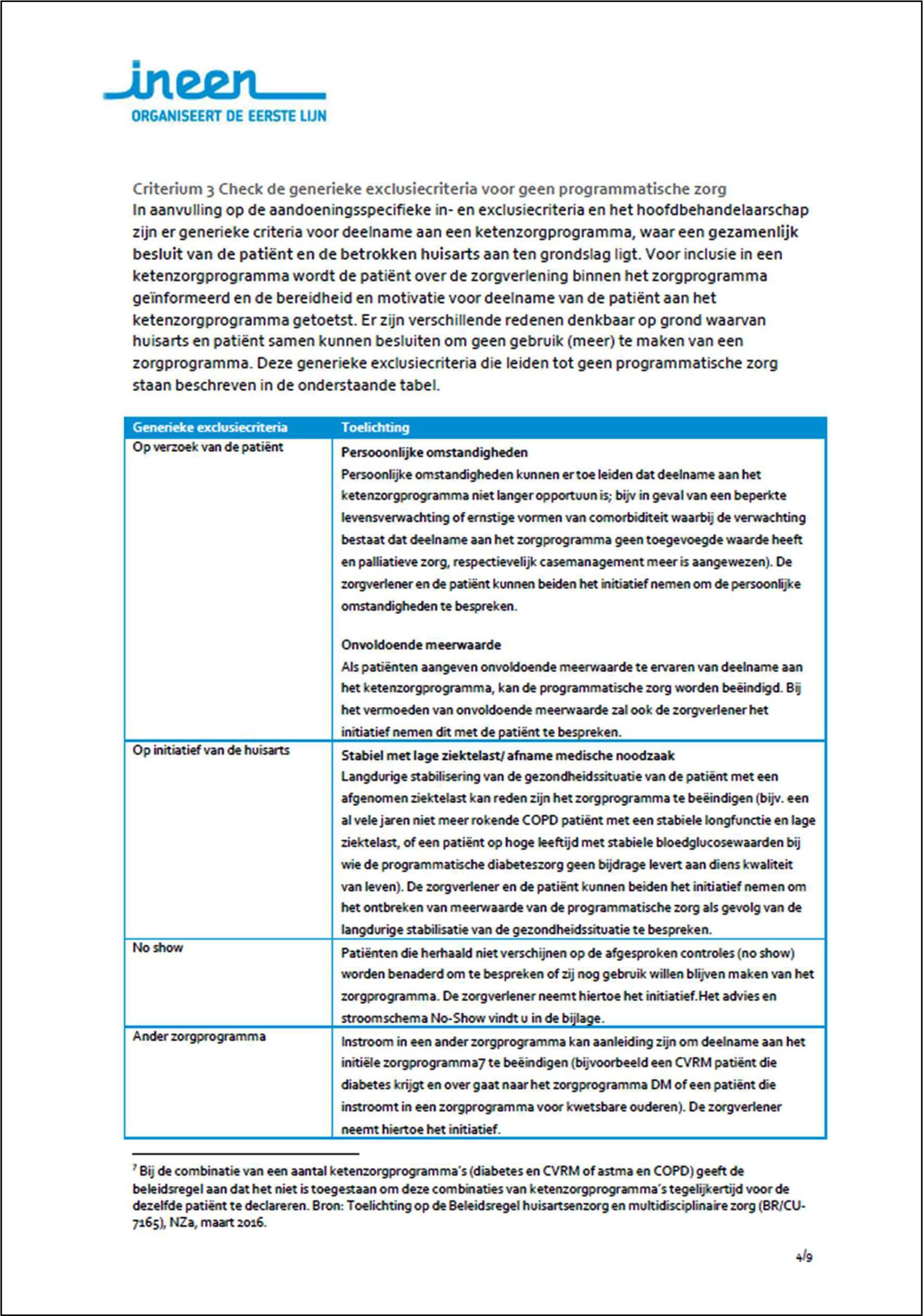 – de huisartsenzorg, incl. de eventuele inzet van een gespecialiseerd verpleegkundige;