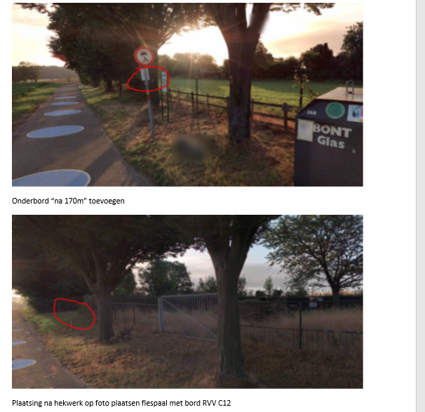 Plaatsen onderbord ‘na 170 m’ aan bestaand bord ‘Gesloten voor alle motorvoertuigen’ (bord C12), welk bord staat bij de ingang van de Kloosterweg ter hoogte van de T splitsing Sittarderweg/Windraak (zie blauwe cirkel 1)
