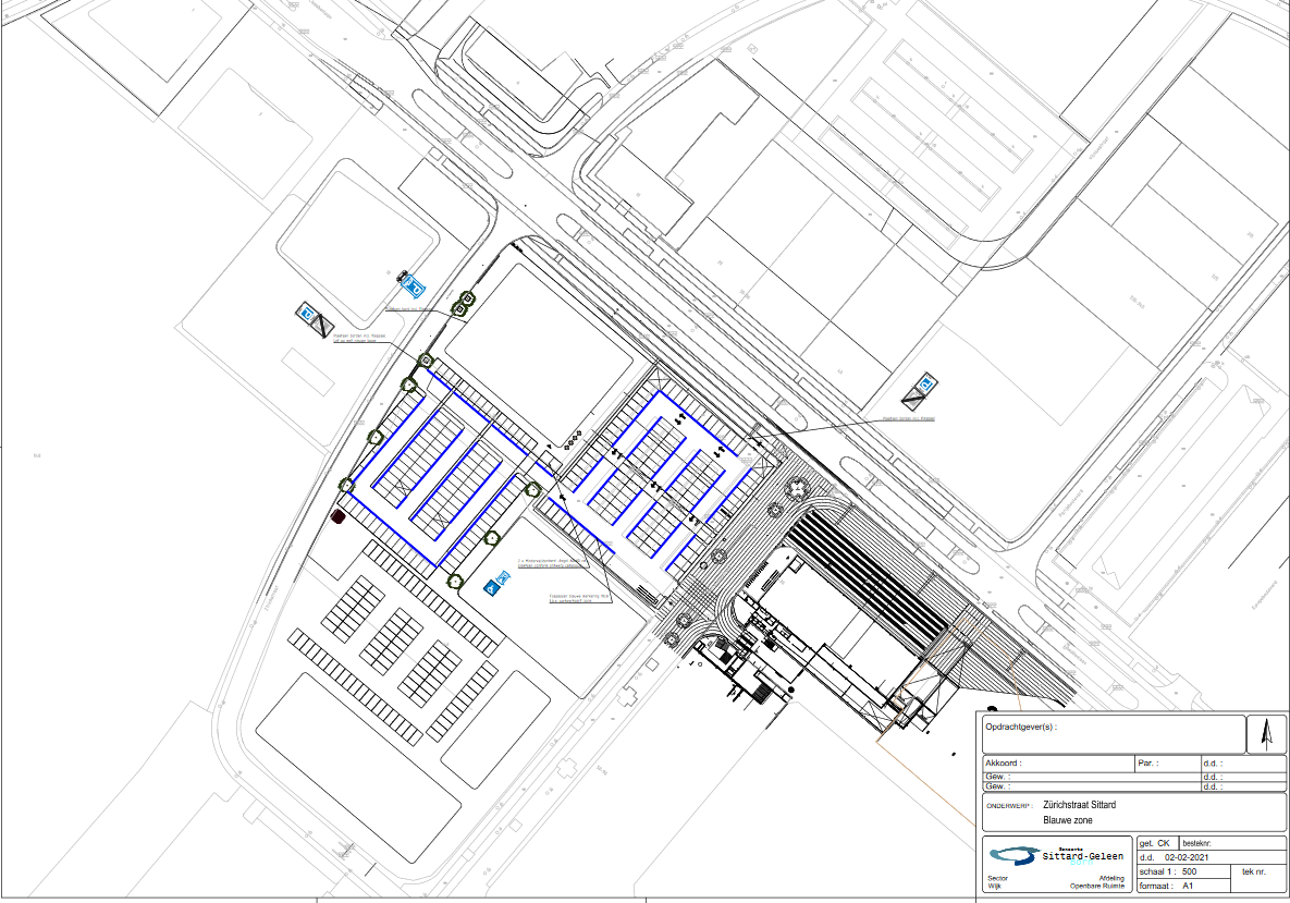 Voor beide parkeerterreinen zal een blauwe zone worden ingesteld.