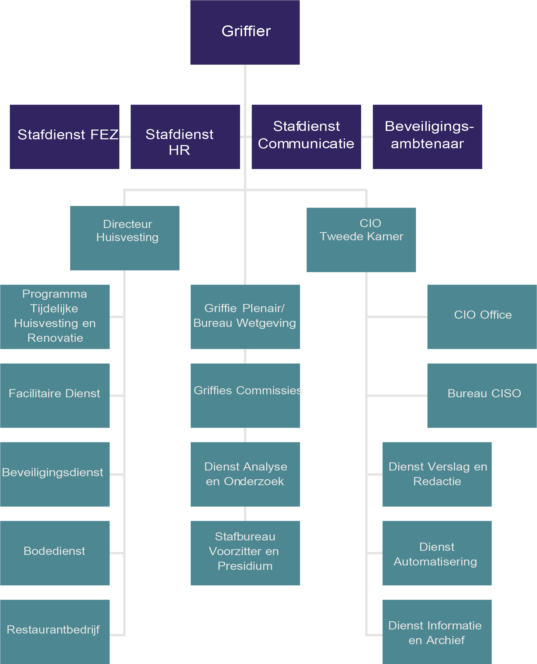 De organisatie van de ambtelijke organisatie van de Tweede Kamer en daarmee de portefeuilles zijn vastgesteld conform het in bijlage 1 opgenomen organogram.