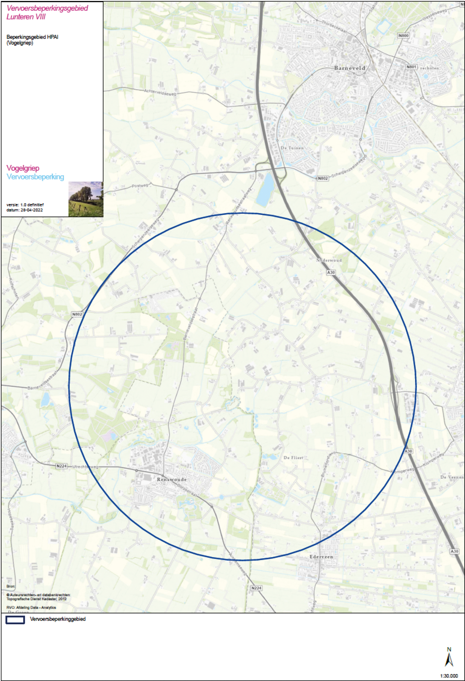 beschermings- en bewakingszone rond de besmette inrichting in Voorthuizen. In deze