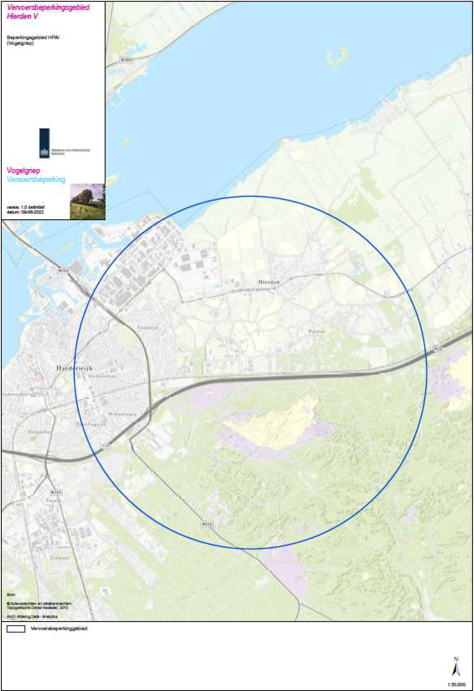 bewakingszone hoogpathogene vogelgriep Hierden IV 2022. Opgemerkt wordt dat sinds