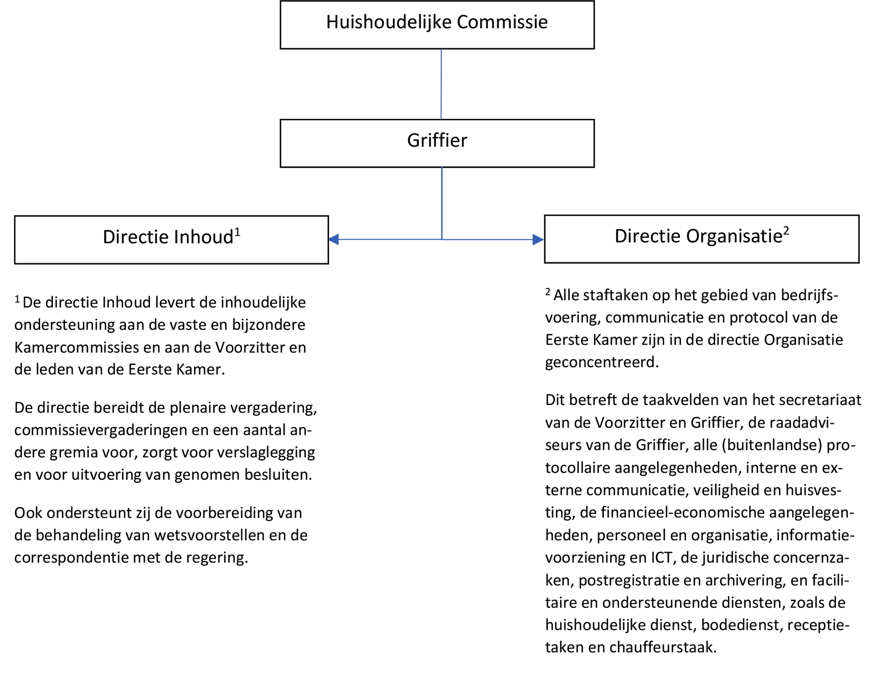 De inrichting van de ambtelijke organisatie van de Eerste Kamer is vastgesteld conform het in bijlage 1 opgenomen organogram.