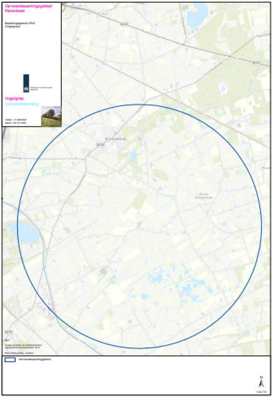 De beschermingszone is een gebied met een straal van 3 kilometer rond de besmette inrichting, zoals aan de hand van een plattegrond is aangeduid in bijlage 1. Een inzoombare, gedetailleerde kaart van die zone is beschikbaar op de website van de Rijksdienst voor Ondernemend Nederland (RVO) (https://www.rvo.nl/dierziektenviewer/). De bewakingszone is in bijlage 2 beschreven aan de hand van de wegen en waterwegen die het gebied met een straal van 10 kilometer rond de besmette inrichting begrenzen.