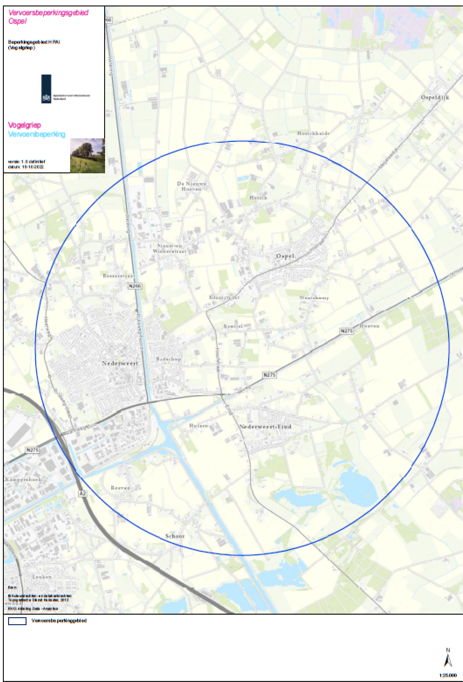 De beschermingszone is een gebied met een straal van 3 kilometer rond de besmette inrichting, zoals aan de hand van een plattegrond is aangeduid in bijlage 1. Een inzoombare, gedetailleerde kaart van die zone is beschikbaar op de website van de Rijksdienst voor Ondernemend Nederland (RVO) (https://www.rvo.nl/dierziektenviewer/). De bewakingszone is in bijlage 2 beschreven aan de hand van de wegen en waterwegen die het gebied met een straal van 10 kilometer rond de besmette inrichting begrenzen.
