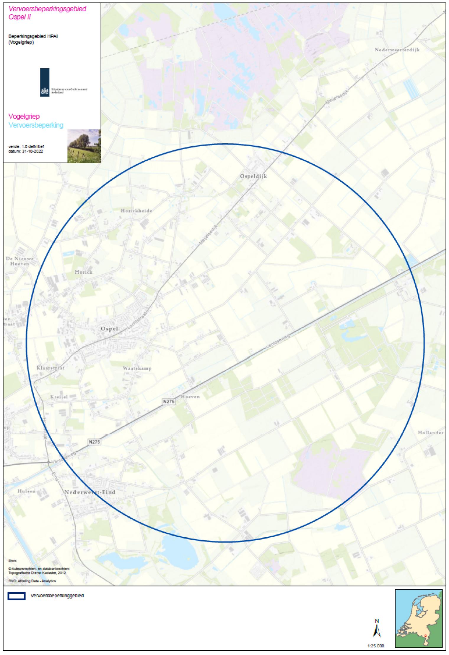 Op een inrichting in Ospel in de provincie Limburg is een uitbraak geconstateerd van hoogpathogene aviaire influenza (HPAI), ofwel vogelgriep. HPAI is een besmettelijke dierziekte, die tot hoge sterftecijfers kan leiden bij vogels en kan worden overgedragen op mensen (een zogenoemde zoönose). Het isoleren van de gevonden besmettingshaard en het voorkomen van verdere verspreiding van de ziekte is daarom van het grootste belang.