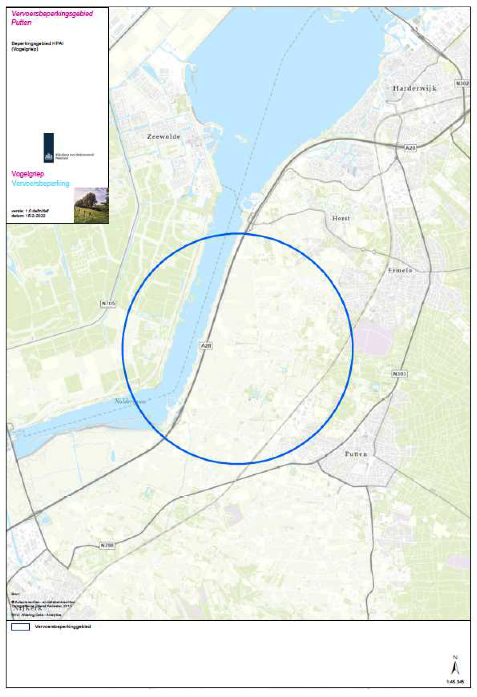 beschermings- en bewakingszone rond de besmette inrichting in Putten. In deze gebieden