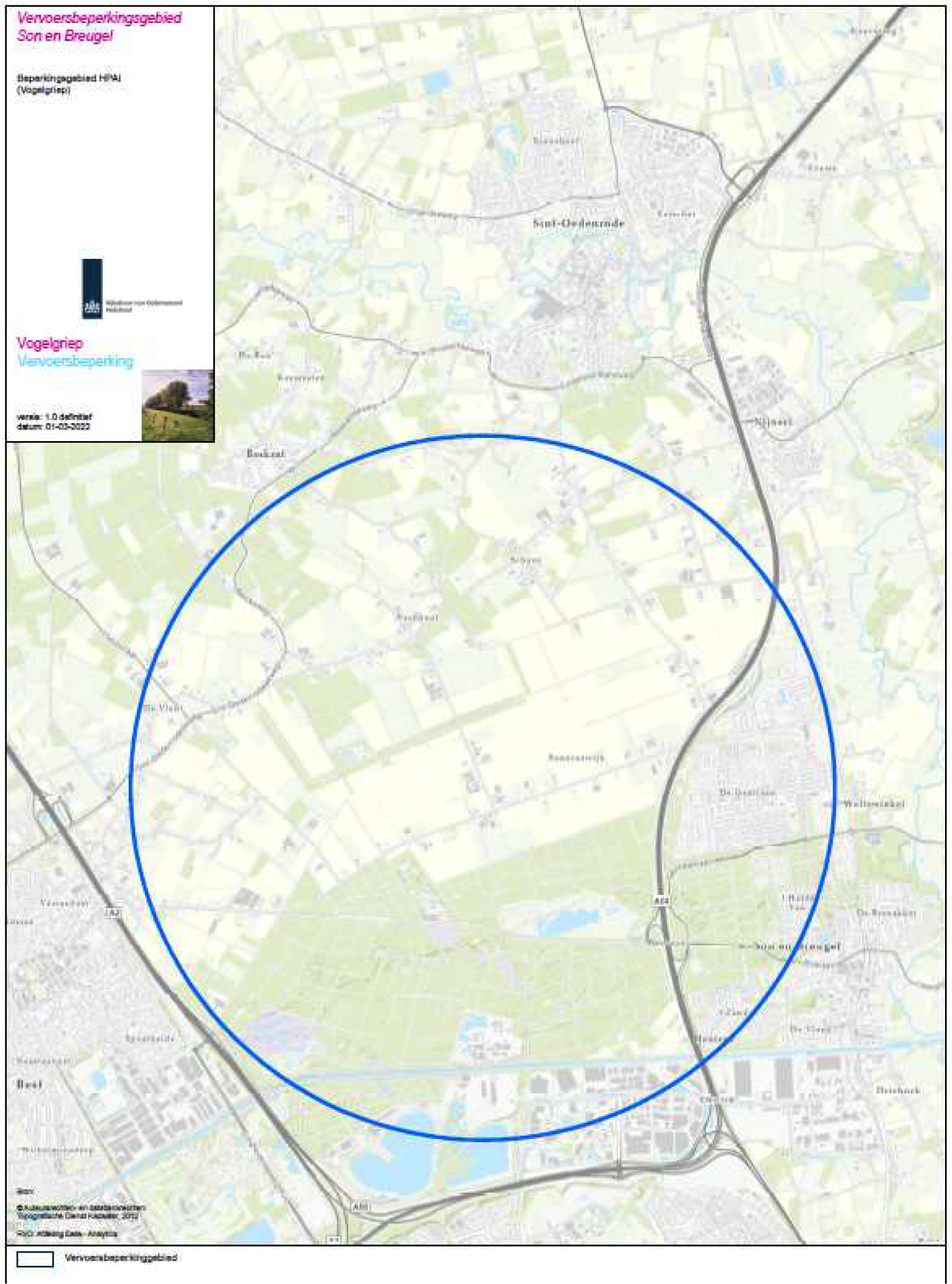 De beschermingszone is een gebied met een straal van 3 kilometer rond