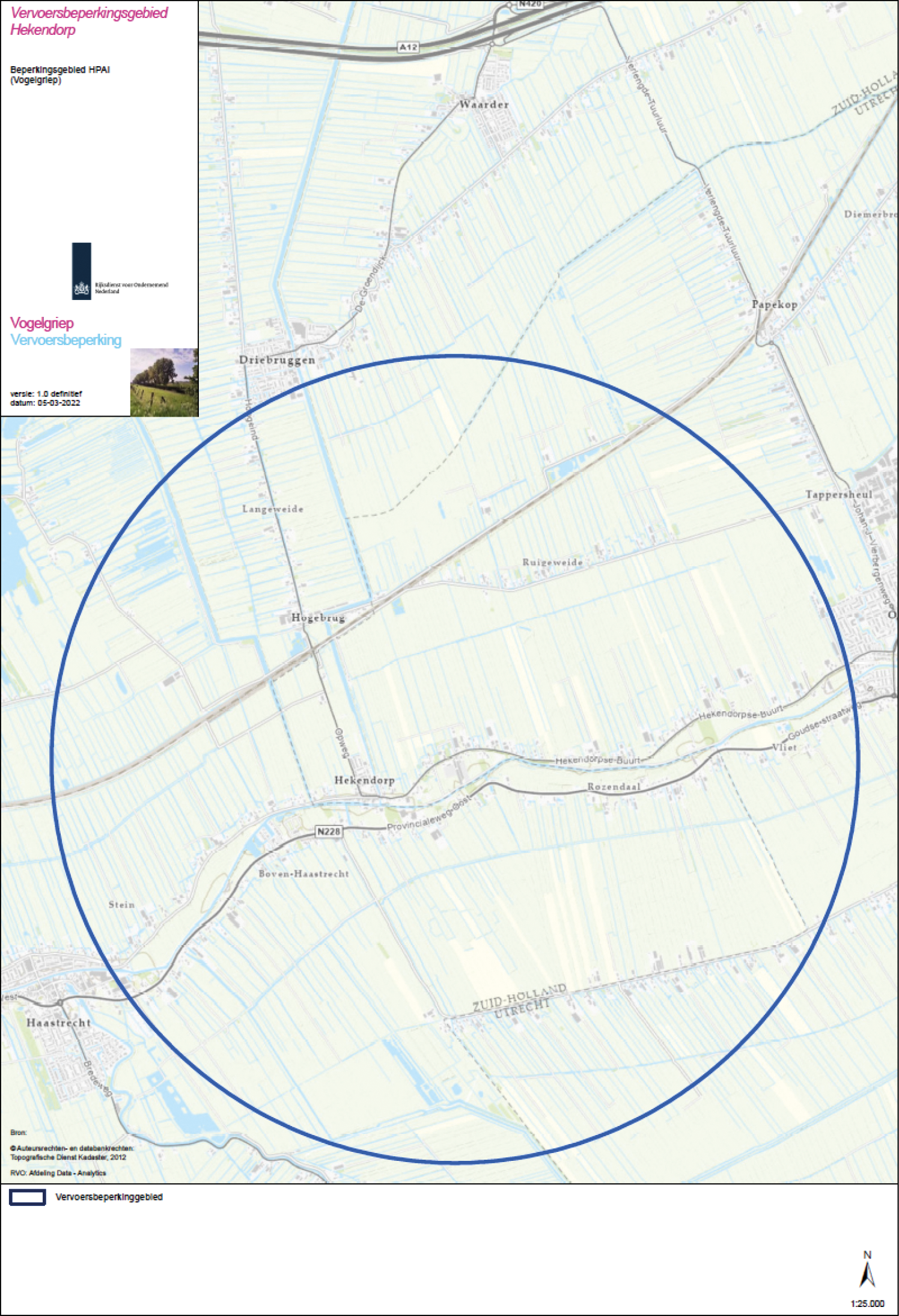 beschermings- en bewakingszone rond de besmette inrichting in Hekendorp. In deze gebieden