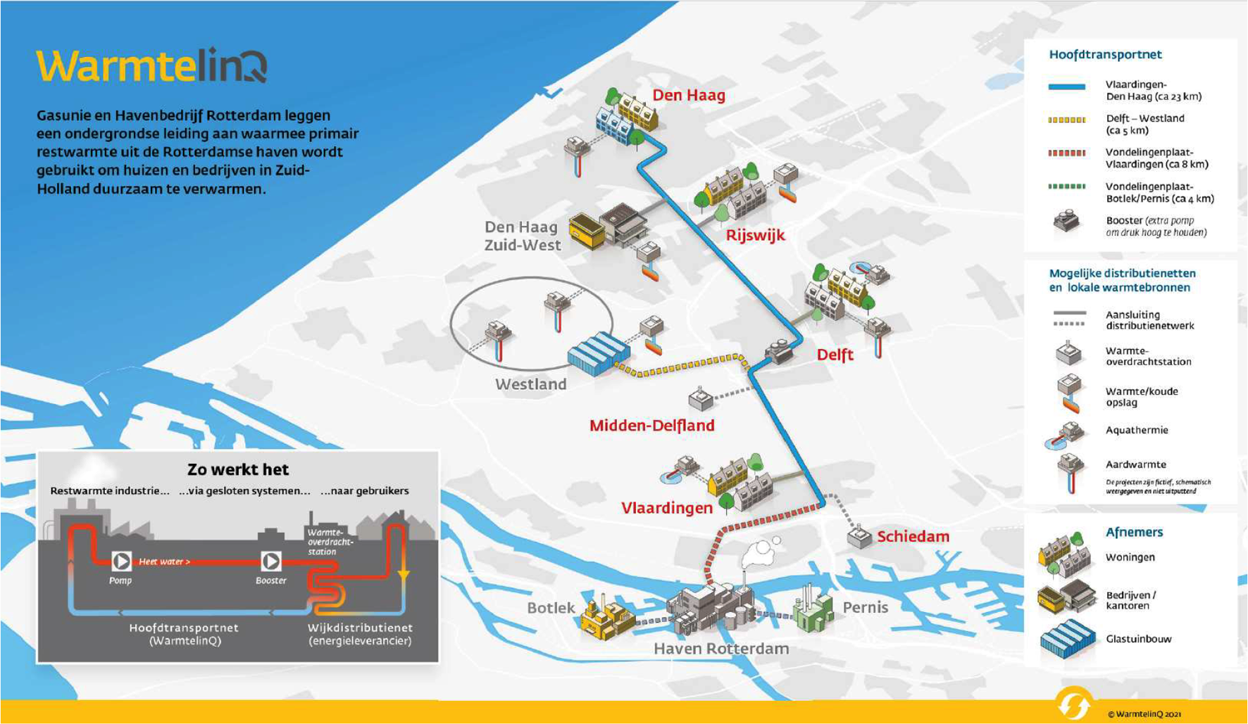 WarmtelinQ is het warmtetransportnet waarmee warmte uit het Rotterdamse haven-industrieel complex wordt getransporteerd binnen Zuid-Holland (zie toelichting in bijlage 2)