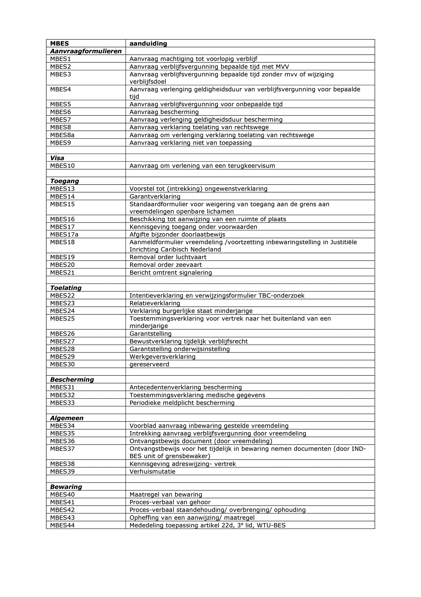 MBES01 wordt (opnieuw) gepubliceerd zoals aangegeven in bijlage 2.