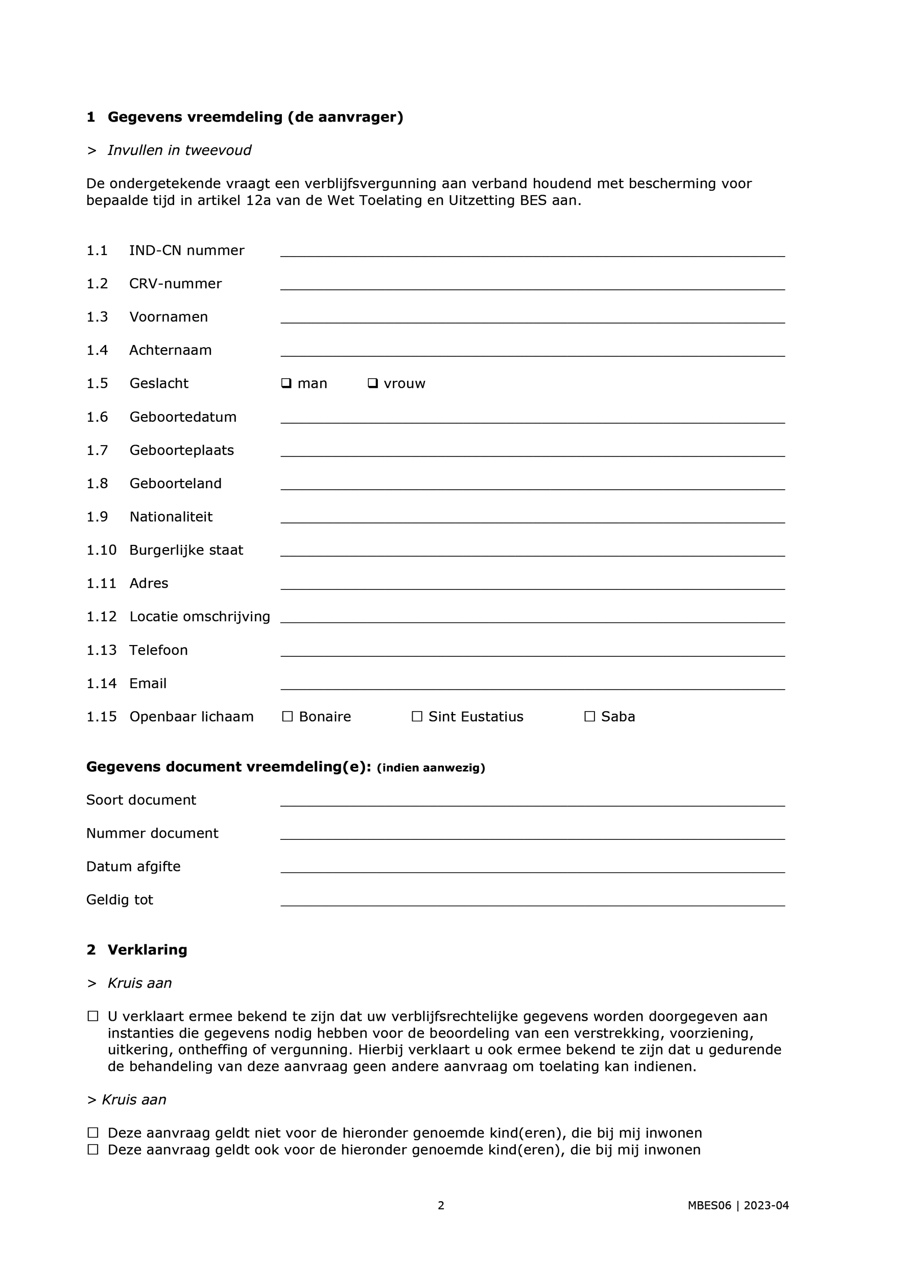 In de modellen MBES 13 en 14 zijn de mogelijkheid van het invullen van een telefoonnummer, mailadres en gegevens van documenten van de vreemdeling toegevoegd.