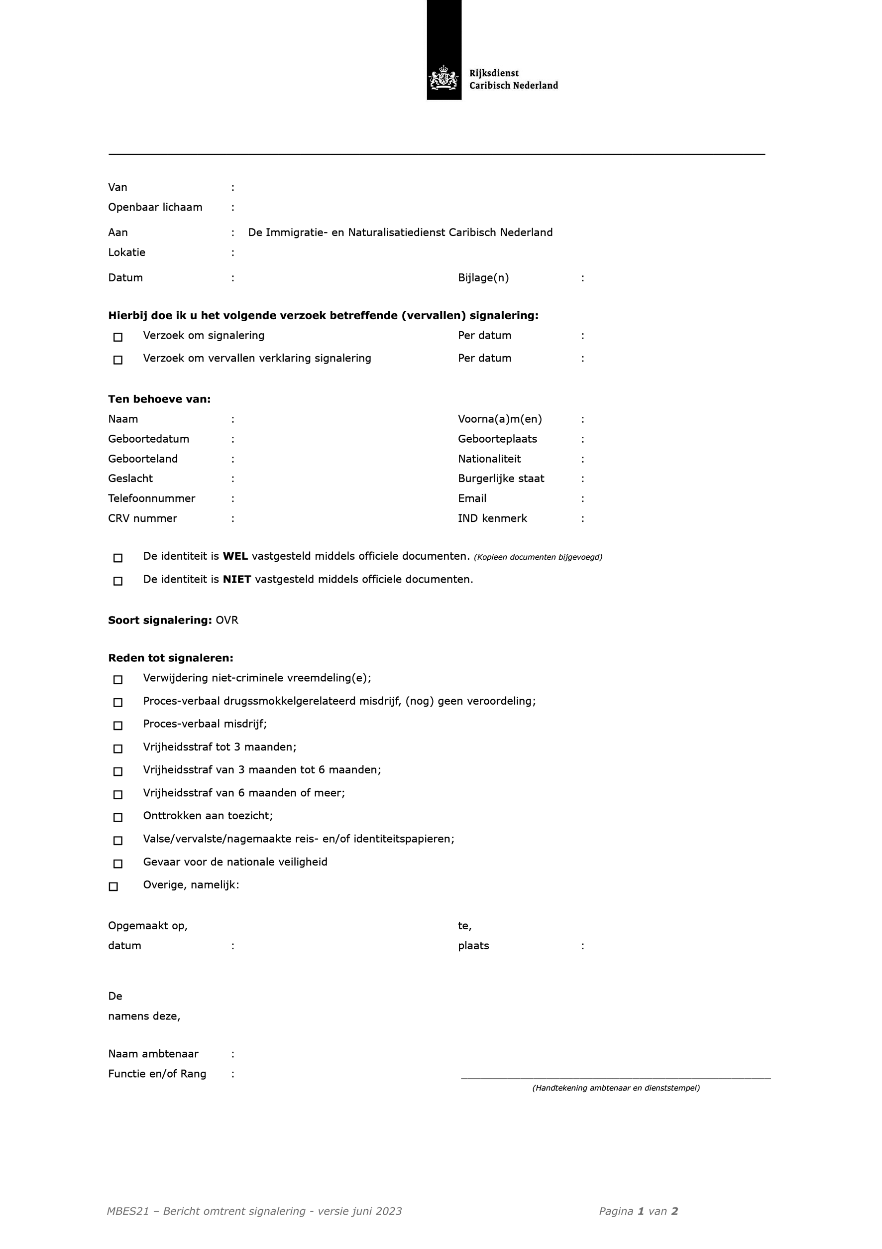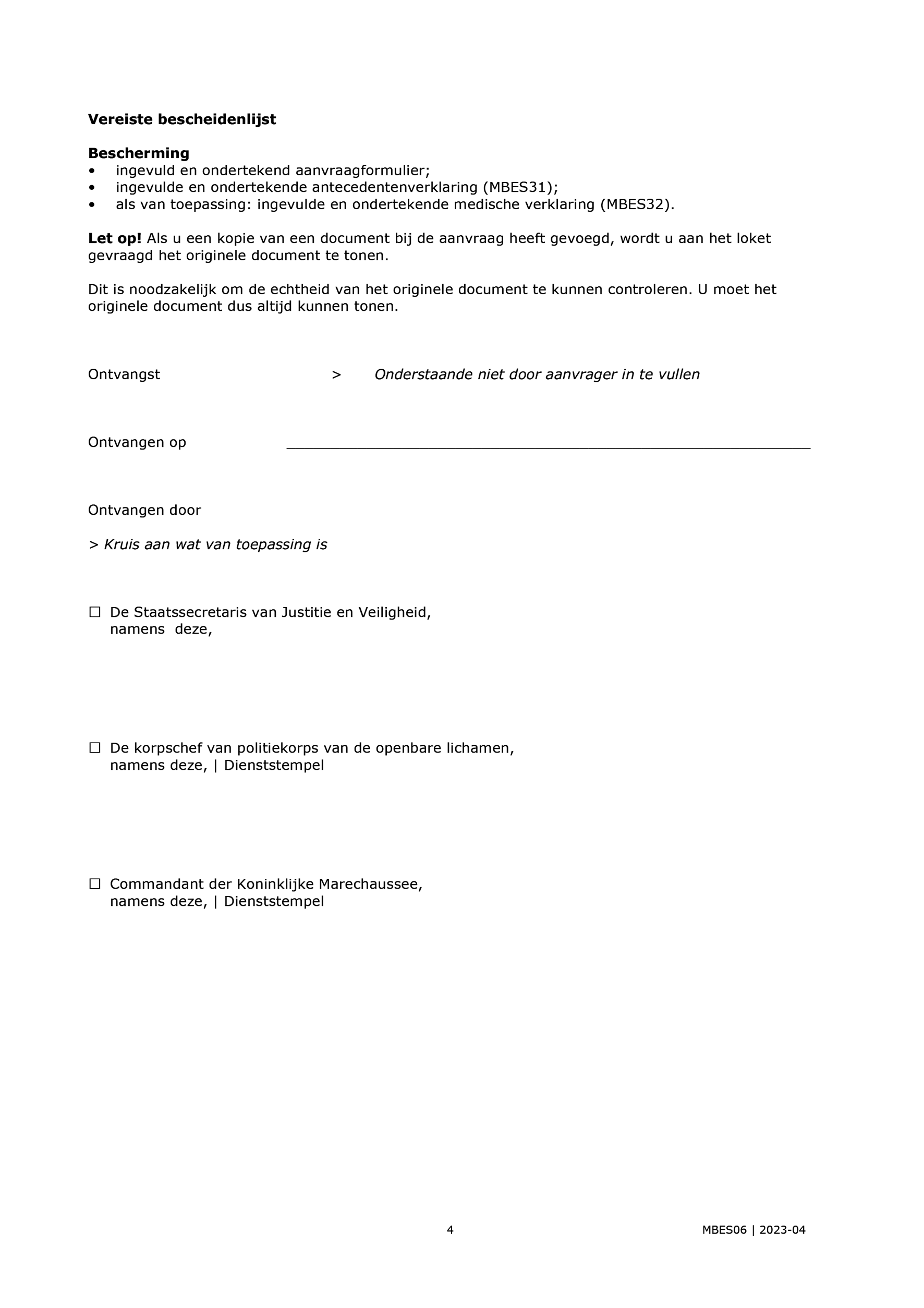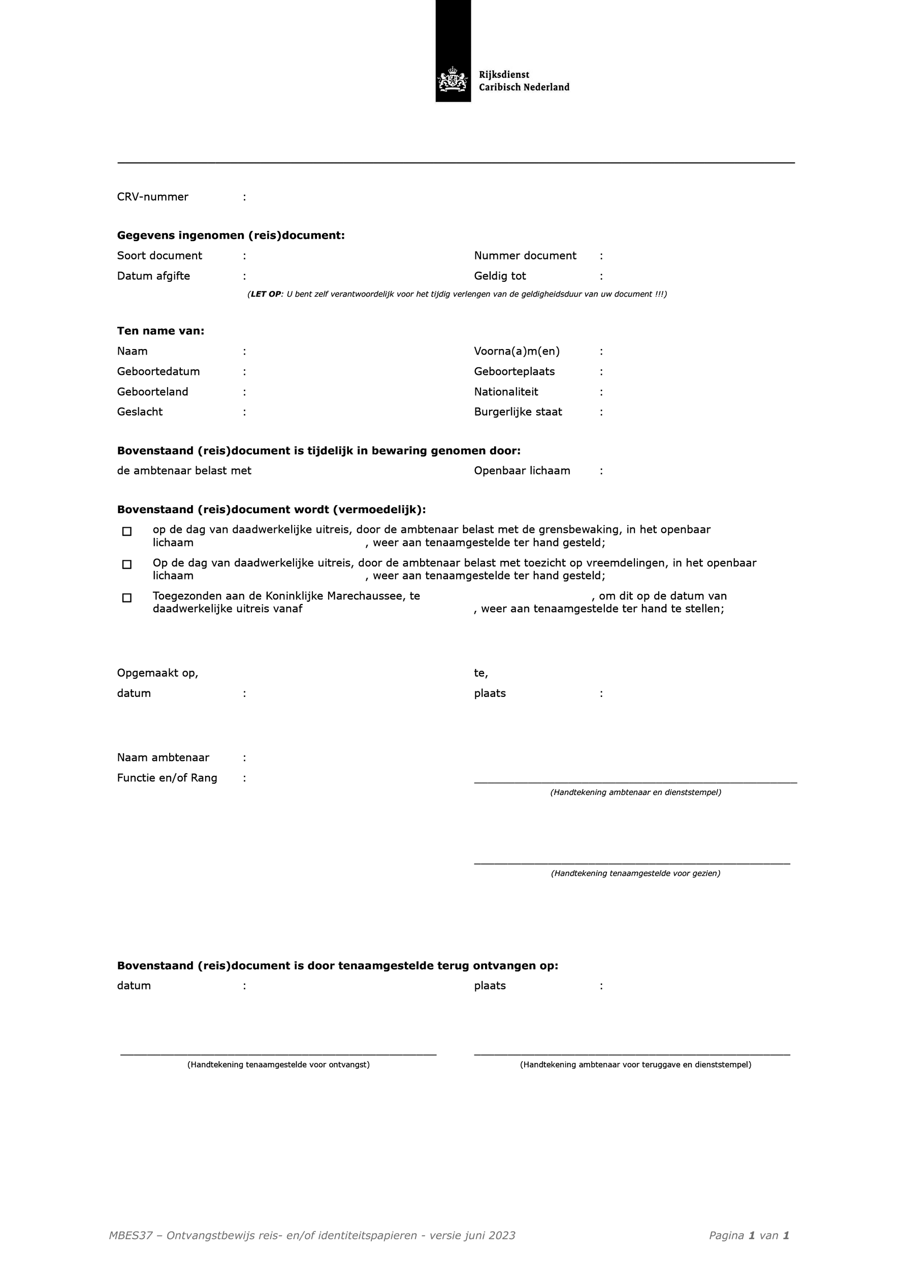 In de modellen MBES 16-20, 37, 40 en 44 is de mogelijkheid toegevoegd dat de vreemdeling een handtekening kan zetten voor ontvangst.