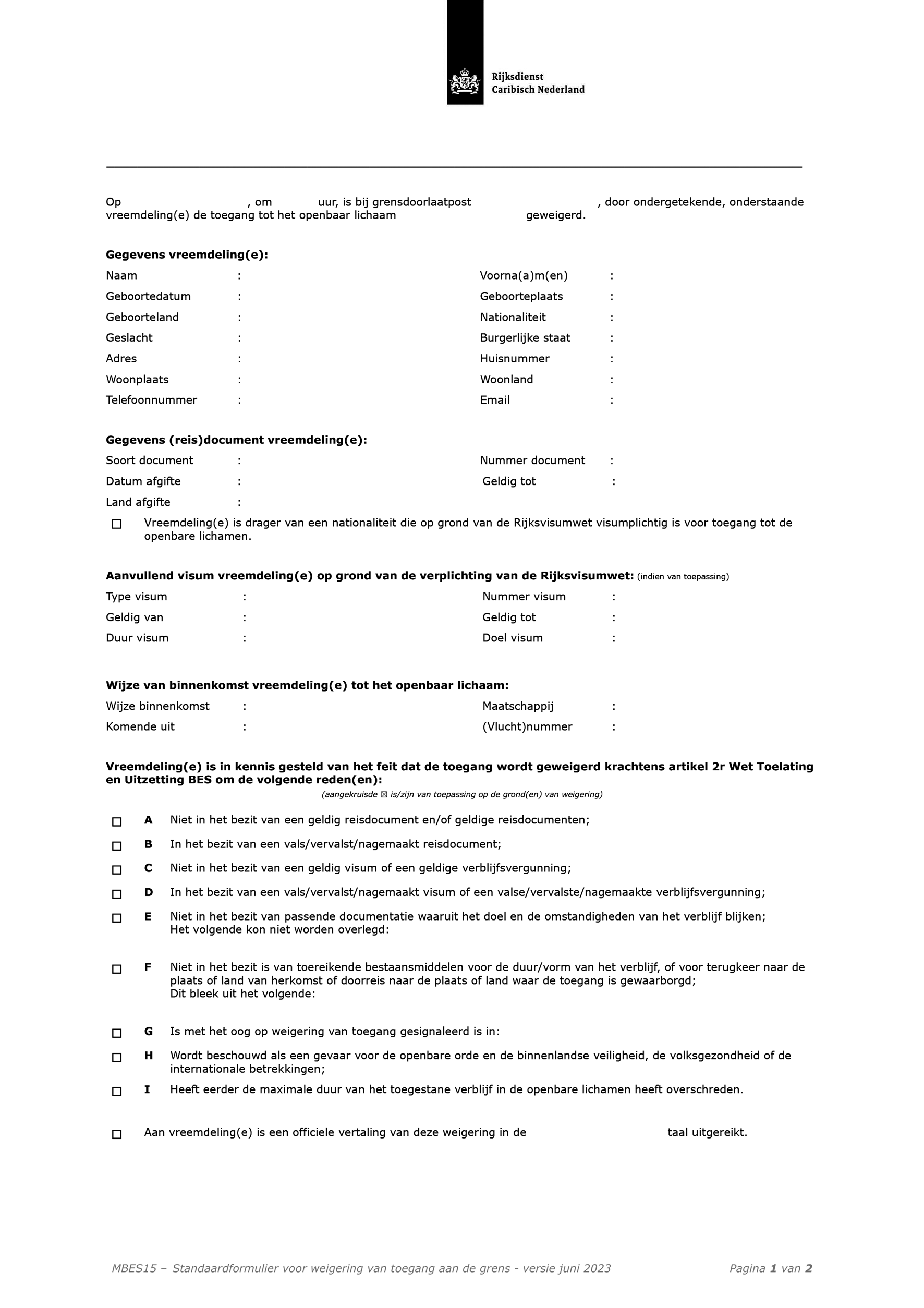 In artikel 2r, eerste lid, onder a, WTU-BES is bepaald dat de toegang aan een vreemdeling wordt geweigerd, als deze niet in het bezit is van een geldig document voor grensoverschrijding. Voor de nadere uitwerking van de voorwaarde om te beschikken over een geldig document voor grensoverschrijding wordt verwezen naar de artikelen 3.5 en 3.6 BTU-BES.