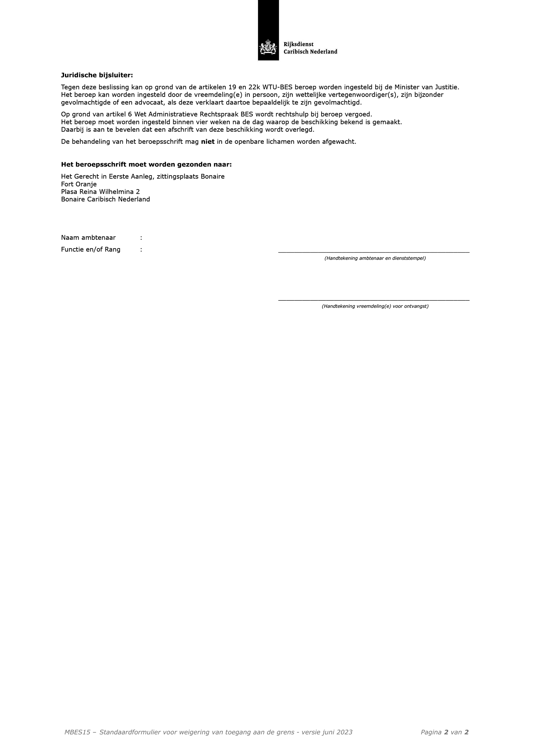 In paragraaf 2.3.1 van Hoofdstuk 1 CTU BES is een verwijzing gemaakt naar het nieuw toegevoegde model MBES17a, waarmee de mogelijkheid tot het afgeven van een Bijzonder Doorlaatbewijs is geregeld. Het nieuwe model MBES17a is ook toegevoegd aan de lijst met modellen in de CTU BES.