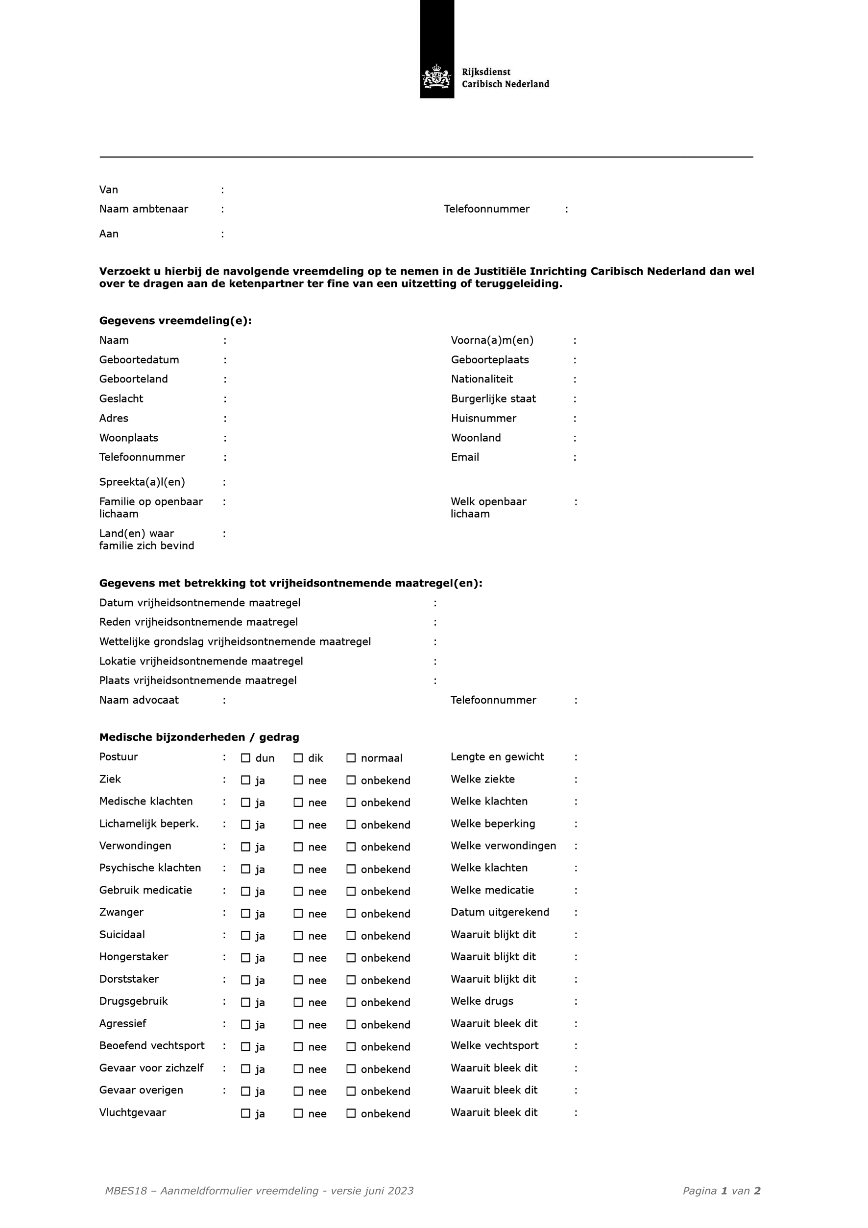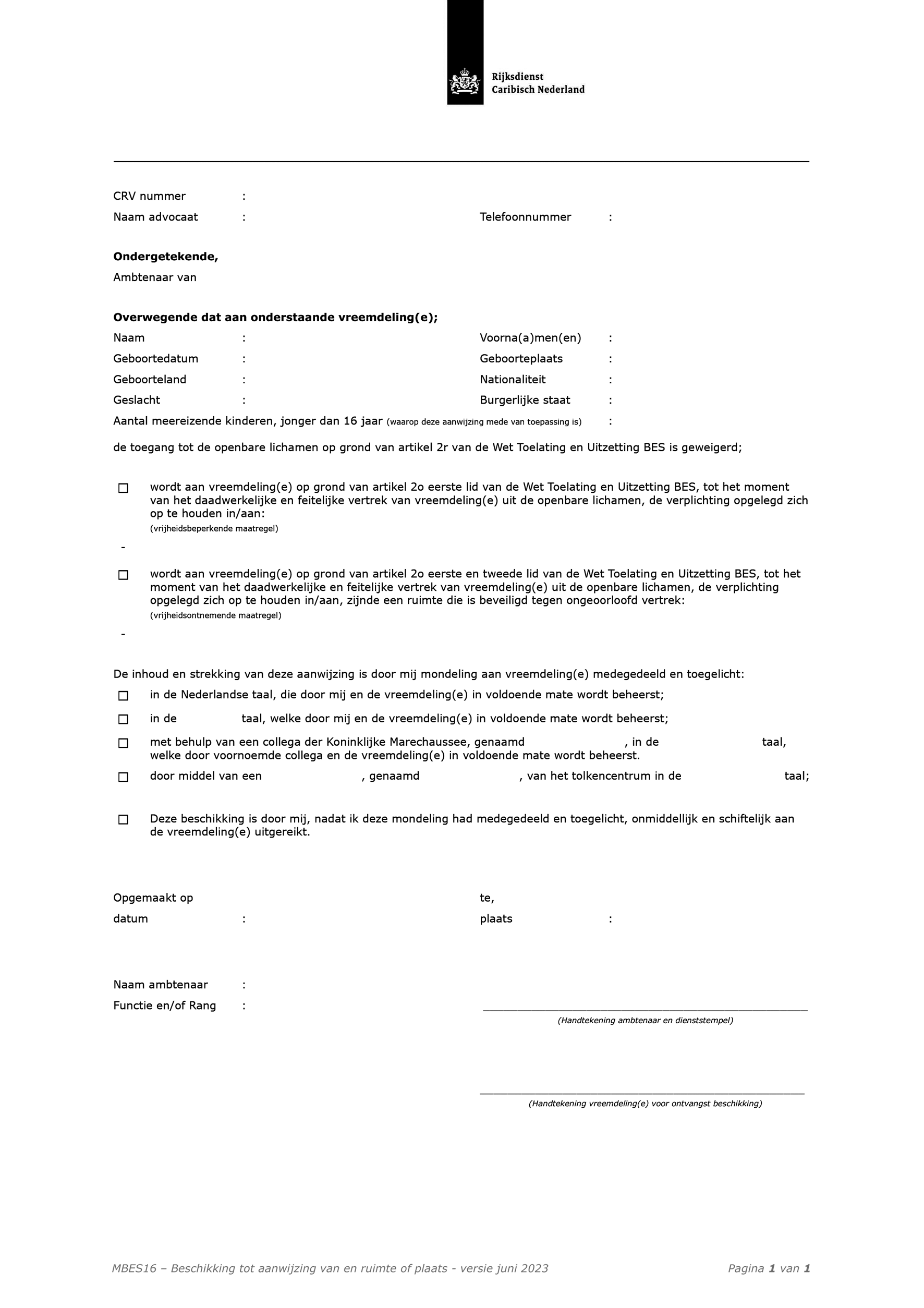 In model MBES 16 is verder toegevoegd een opsplitsing welke maatregel daadwerkelijk toegepast wordt, zodat direct helder is dat er een vrijheidsbeperkende maatregel (artikel 2o, eerste lid) of vrijheidsontnemende maatregel (artikel 2o eerste en tweede lid) toegepast wordt.