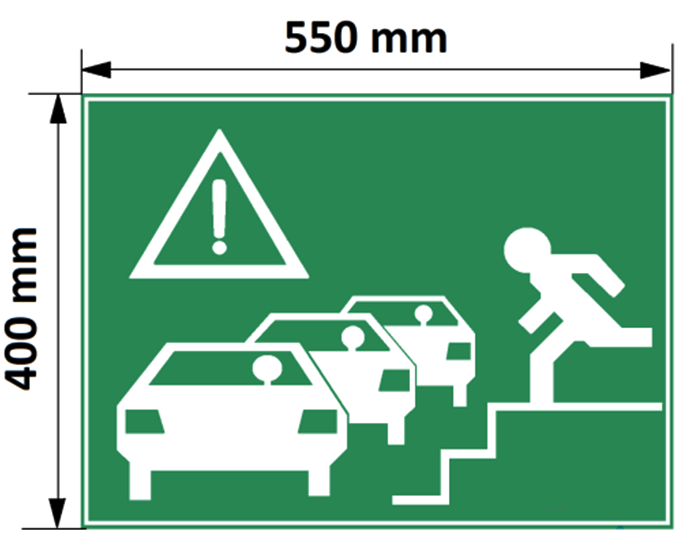 3. Het pictogram, bedoeld in het tweede lid, bevat, in wit op een groene achtergrond volgens RAL 6024, een afbeelding van een vluchtend persoon met risico snelweg overeenkomstig onderstaand figuur: