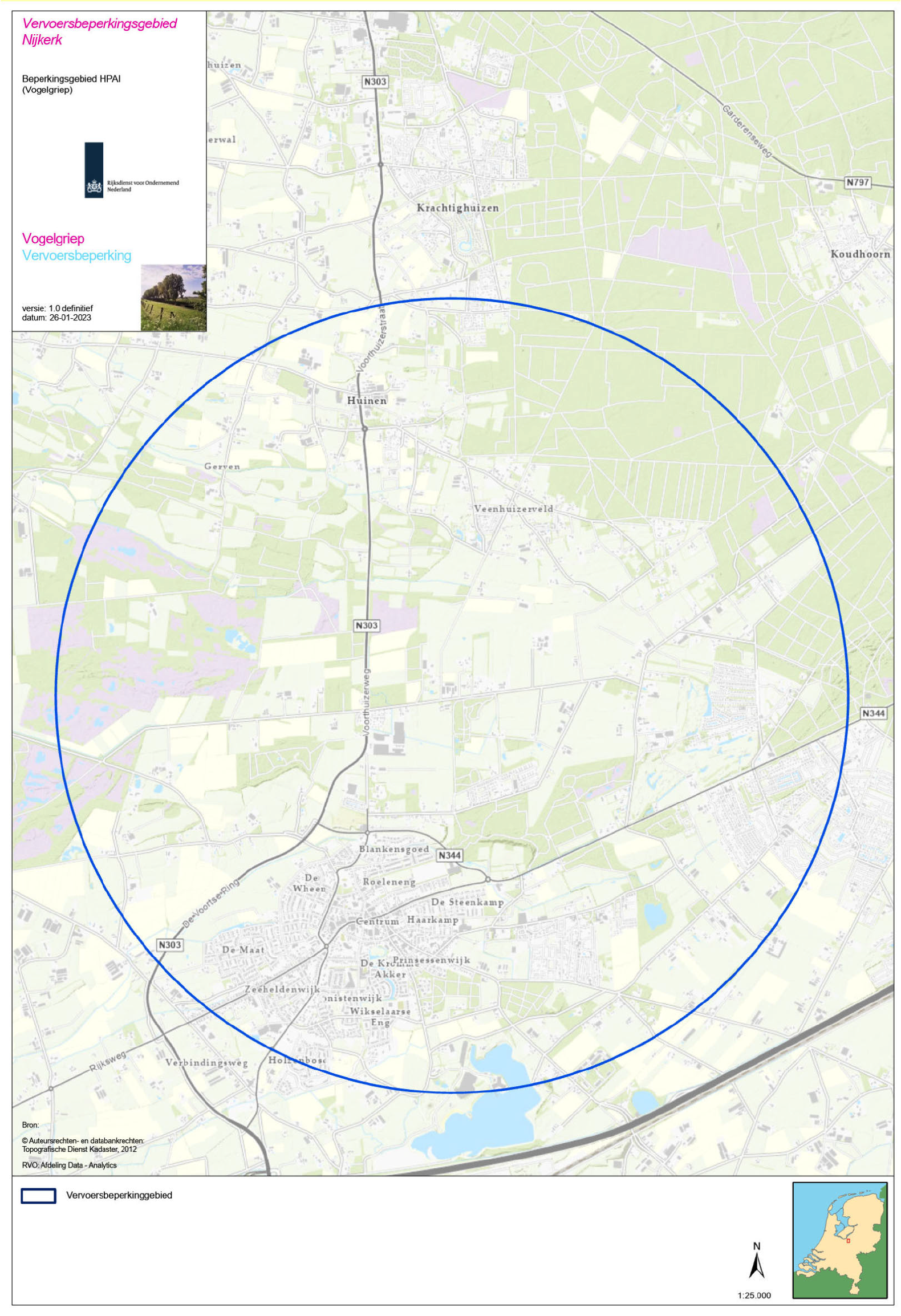 Eén van die maatregelen is het instellen van een beperkingszone die bestaat uit een beschermings- en bewakingszone rond de besmette inrichting in Nijkerk. In deze gebieden gelden diverse maatregelen. De verboden zijn in beide zones gelijk; verordening 2020/687 voorziet voor de bewakingszone in verhoudingsgewijs meer ruimte voor de bevoegde autoriteit om uitzonderingen op de verboden te verlenen in vergelijking met de beschermingszone. Dit vereist maatwerk door middel van ontheffingverlening.