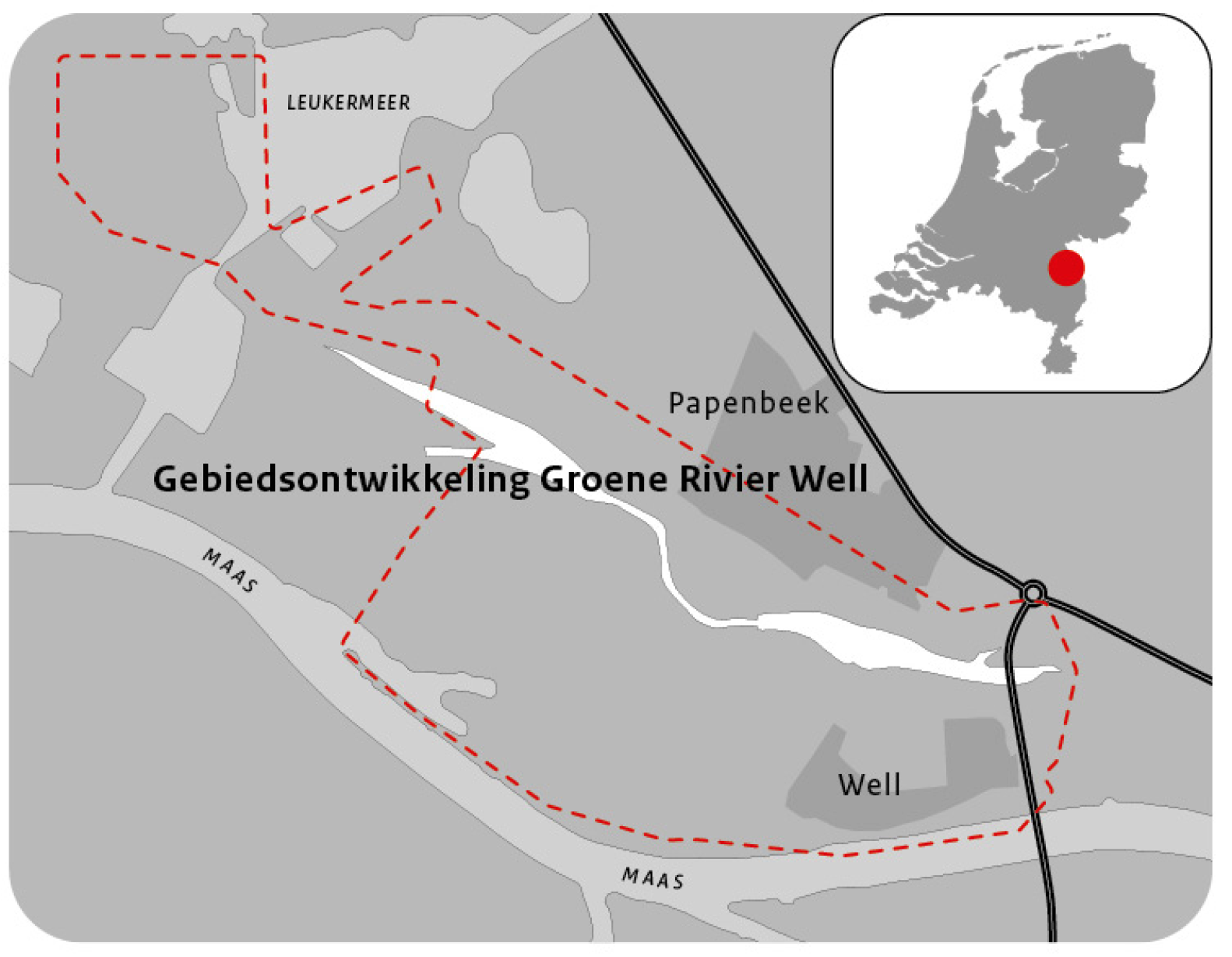 Het Ministerie van Infrastructuur en Waterstaat, Waterschap Limburg, de provincie Limburg en de gemeente Bergen werken samen met de omgeving aan de gebiedsontwikkeling Groene Rivier Well. De opgave omvat het verbeteren van de systeemwerking van de Maas door rivierbed te behouden en waterstandsdaling te realiseren, het aanleggen, verhogen en versterken van primaire waterkeringen en het verbeteren van het ecologisch functioneren van de Molenbeek. Daarnaast wordt de ruimtelijke kwaliteit van het gebied verbeterd en worden de gebruiks- en belevingswaarde voor bewoners en bezoekers versterkt. De maatregelen worden duurzaam gerealiseerd en beheerd.