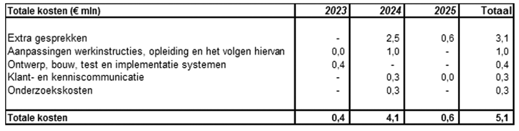 De exacte kosten zijn in kaart gebracht in de uitvoeringstoets van UWV.