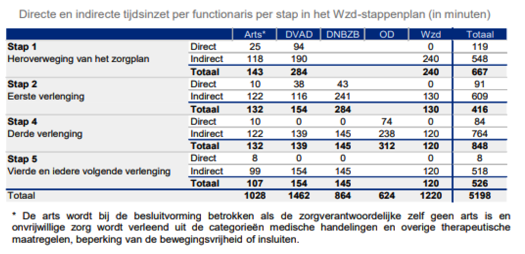 Vervolgens heeft KPMG Advisory N.V. op verzoek van de NZa een onderzoek uitgevoerd naar de tijdsinzet van de betrokken professionals om het stappenplan uit te voeren. Ook geeft het onderzoeksrapport de benodigde incidentele en structurele ICT- en opleidingskosten weer, die essentieel zijn voor de in- en uitvoering van de Wzd.