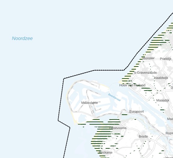 Het gemeentelijk ingedeeld gebied is het gebied dat tot een gemeentelijk grondgebied (in dit geval Rotterdam) behoort. Zie voor Rotterdam: Besluit wijziging grens tussen gemeente Rotterdam en niet-ingedeeld gebied in Noordzee, tevens provinciegrens Zuid-Holland, 1 januari 2004. Terug naar link van noot.