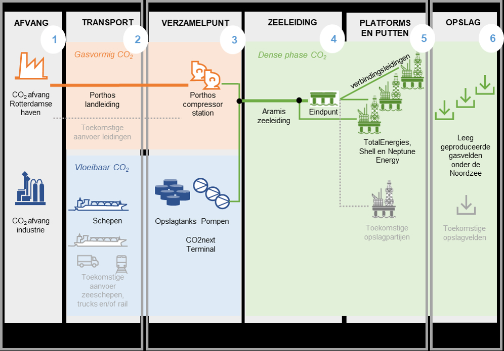 Met het project wordt een belangrijke bijdrage geleverd aan het verlagen van CO2-uitstoot in de atmosfeer van industrieën die moeilijk te verduurzamen zijn. Het is de bedoeling dat in de toekomst meerdere industriële bedrijven waar CO2 wordt afgevangen en verschillende opslagpartijen die CO2 permanent kunnen opslaan op Aramis kunnen aansluiten.