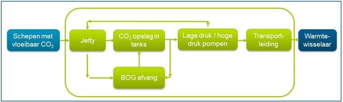 1. Ten behoeve van de realisatie en exploitatie van een CO2-terminal voor de ontvangst, tijdelijke opslag en het op de juiste druk brengen van vloeibare CO2, worden de volgende voorzieningen gerealiseerd: