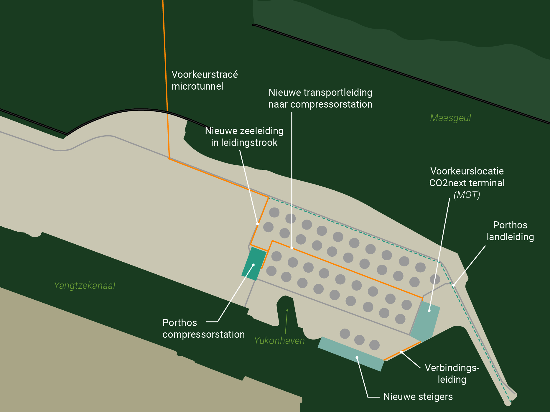 2. Ten behoeve van het op de juiste druk en temperatuur brengen van de CO2 wordt een uitbreiding van het compressorstation voor Porthos voorzien.