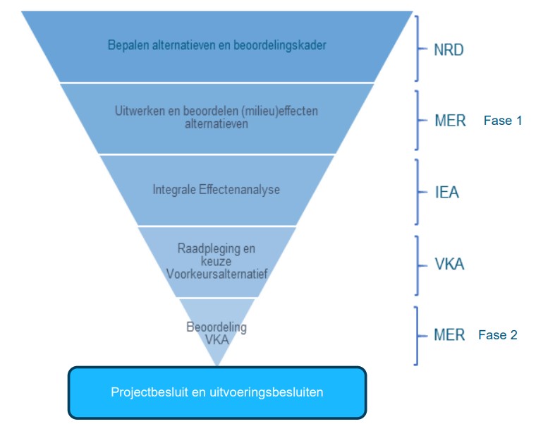 Voor het vaststellen van een projectbesluit geldt de projectprocedure van afdeling 5.2 Omgevingswet. De minister van Klimaat en Groene Groei (KGG) is bevoegd gezag in het onderhavige geval. De minister van VRO moet mede ondertekenen (artikel 5.44 Omgevingswet). De projectprocedure bestaat (in dit geval) uit de volgende stappen: