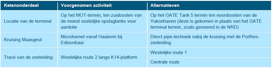 In de NRD werd nog een derde variant voor het eindpunt genoemd, namelijk de mogelijkheid om het eindpunt op platform L4-A te plaatsen. Dit is technisch niet haalbaar. Daarom is deze variant komen te vervallen en ook niet beschreven in het MER. Terug naar link van noot.