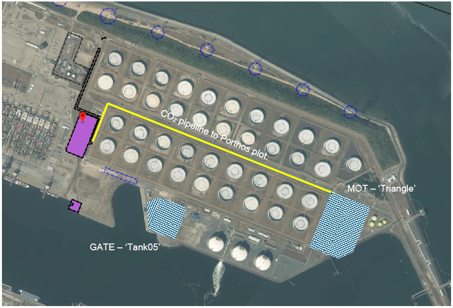 Gate is een LNG-importterminal op de eerste Maasvlakte. Er is sinds de NRD een nabijgelegen alternatieve locatie op het GATE terrein voor de CO2-terminal in beeld gekomen, de zogenaamde GATE-Tank 5 locatie. Deze locatie biedt iets meer ruimte en vervangt daarom de locatie die was opgenomen in de NRD. Terug naar link van noot.