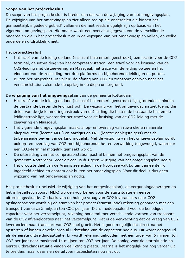 dat het gezien de gewenste reductie van CO2 in de atmosfeer noodzakelijk is om de aanleg, het beheer en de exploitatie van een CO2-transport infrastructuur in het Rotterdamse Havengebied te realiseren;